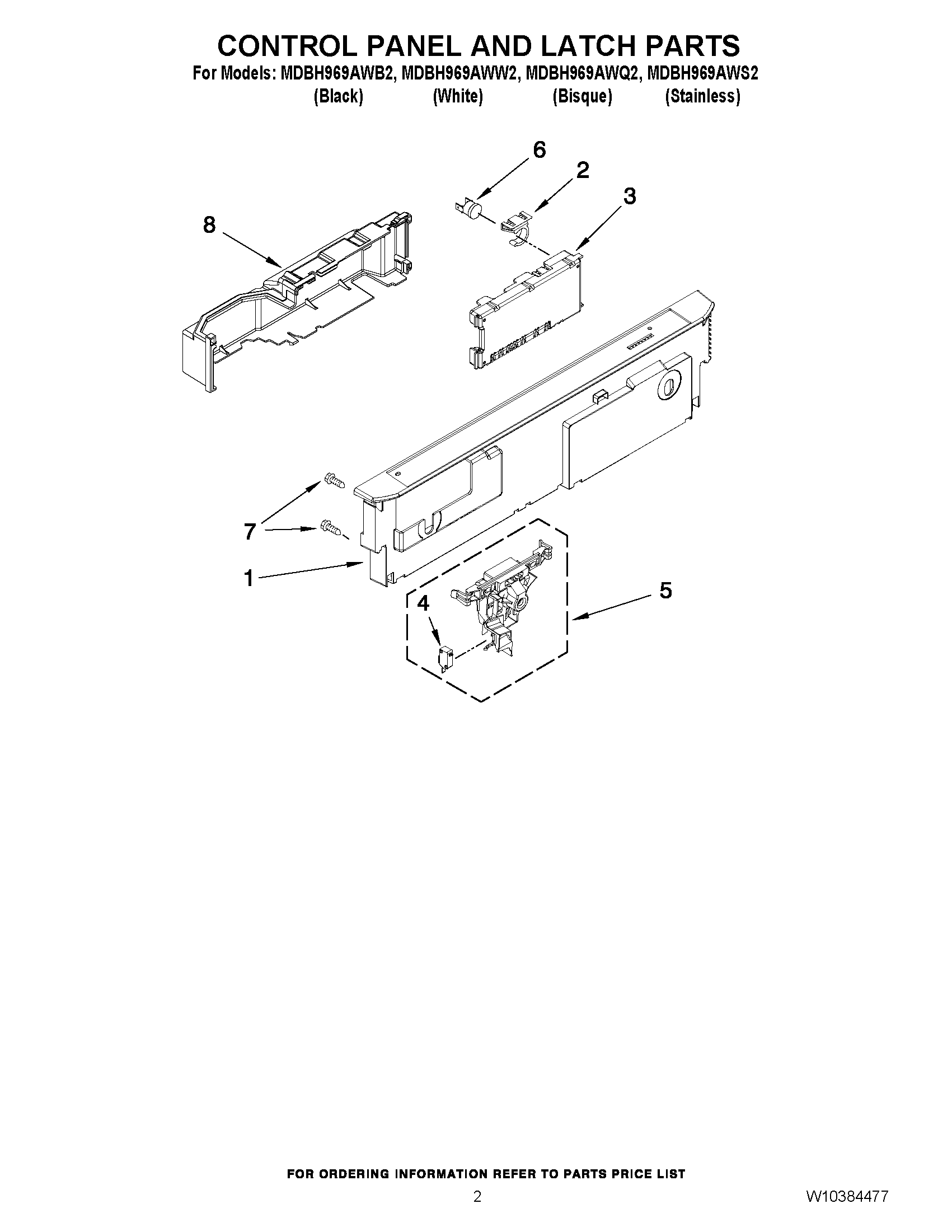 MDBH969AWQ2 02 – CONTROL PANEL AND LATCH PARTS