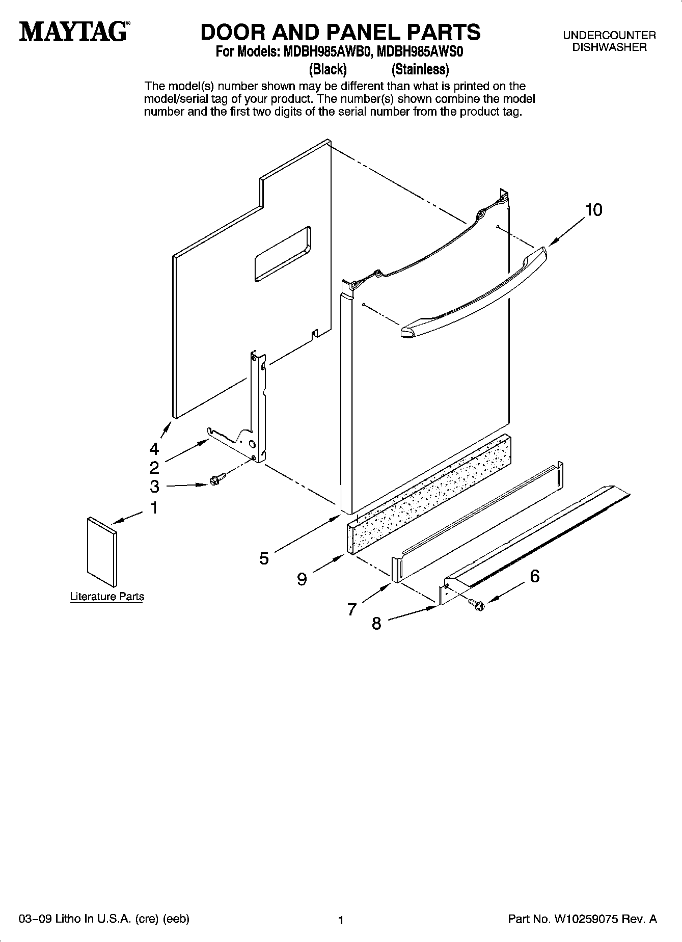 MDBH985AWB0 01 – DOOR AND PANEL PARTS