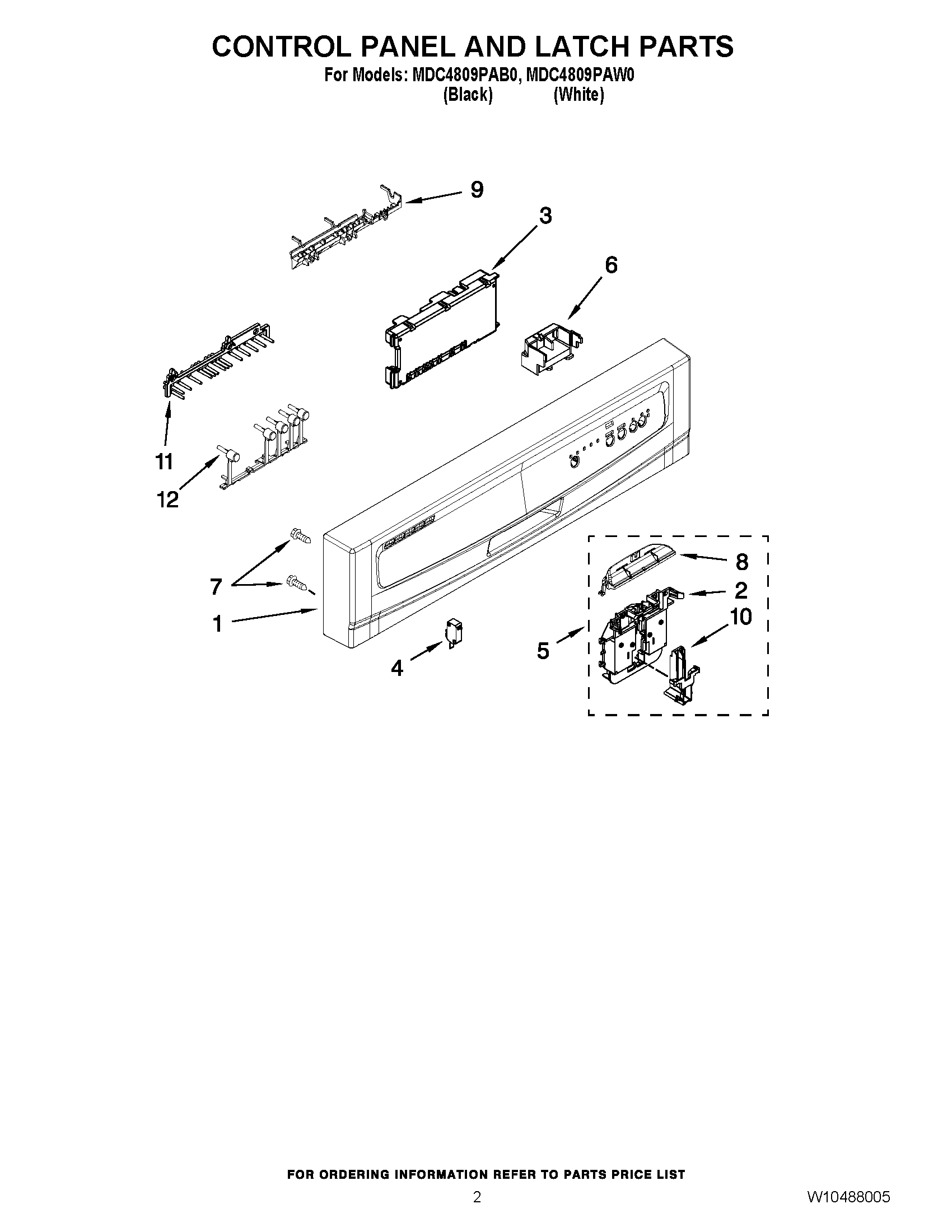 MDC4809PAW0 02 – CONTROL PANEL AND LATCH PARTS