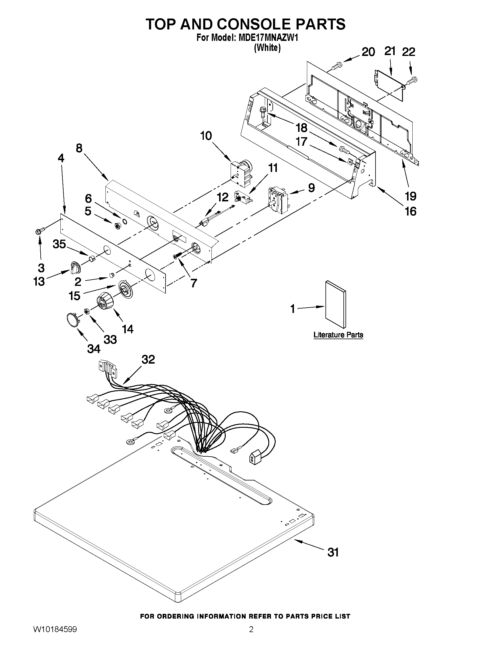 MDE17MNAZW1 01 – TOP AND CONSOLE PARTS