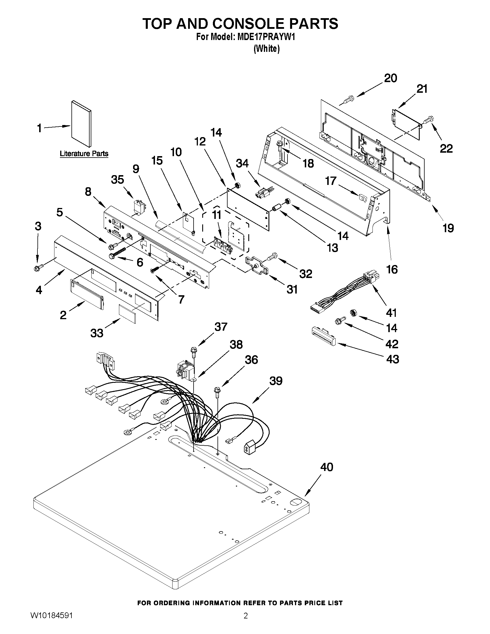 MDE17PRAYW1 01 – TOP AND CONSOLE PARTS
