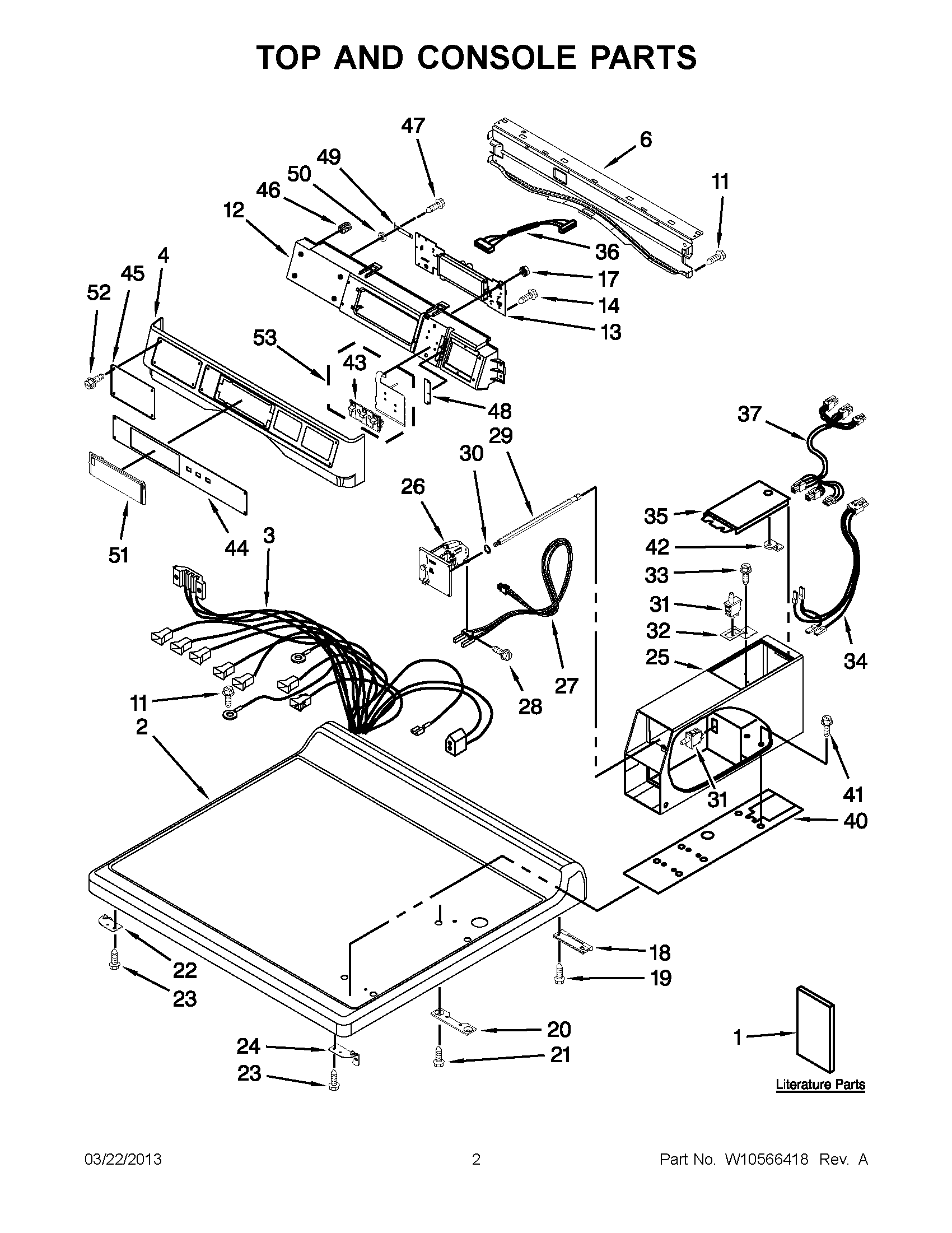 MDE25PDAYW1 01 – TOP AND CONSOLE PARTS