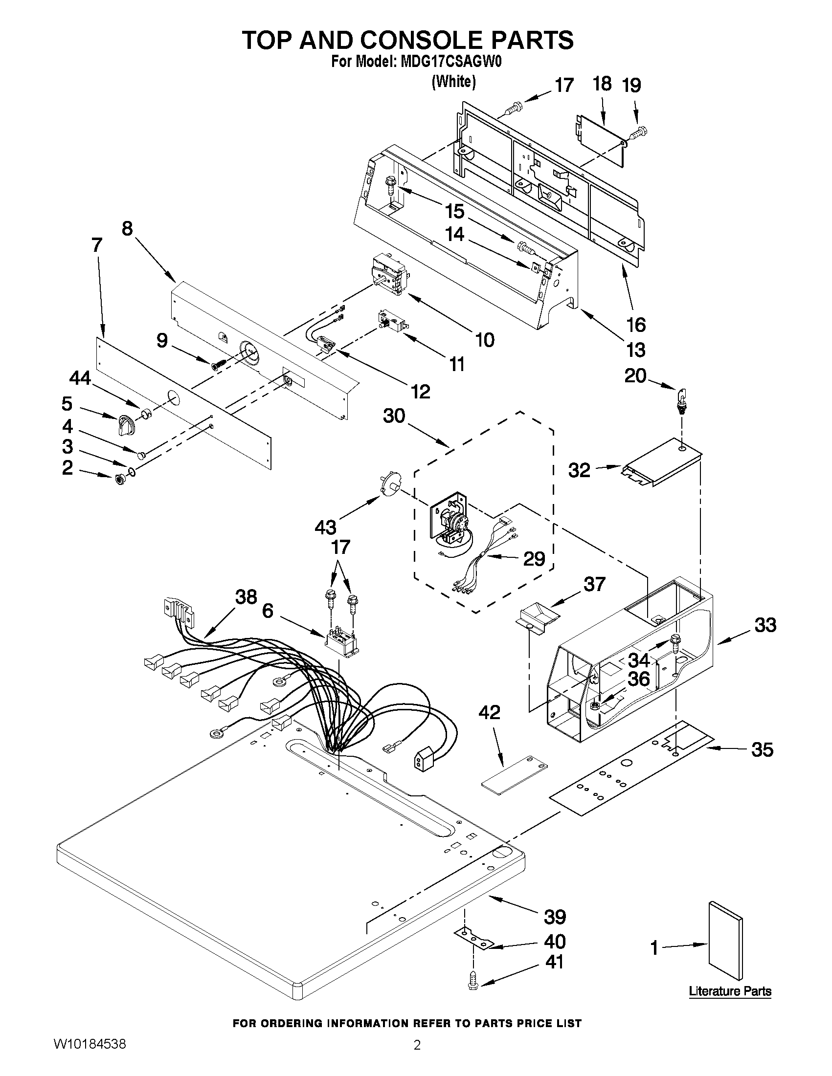 MDG17CSAGW0 01 – TOP AND CONSOLE PARTS