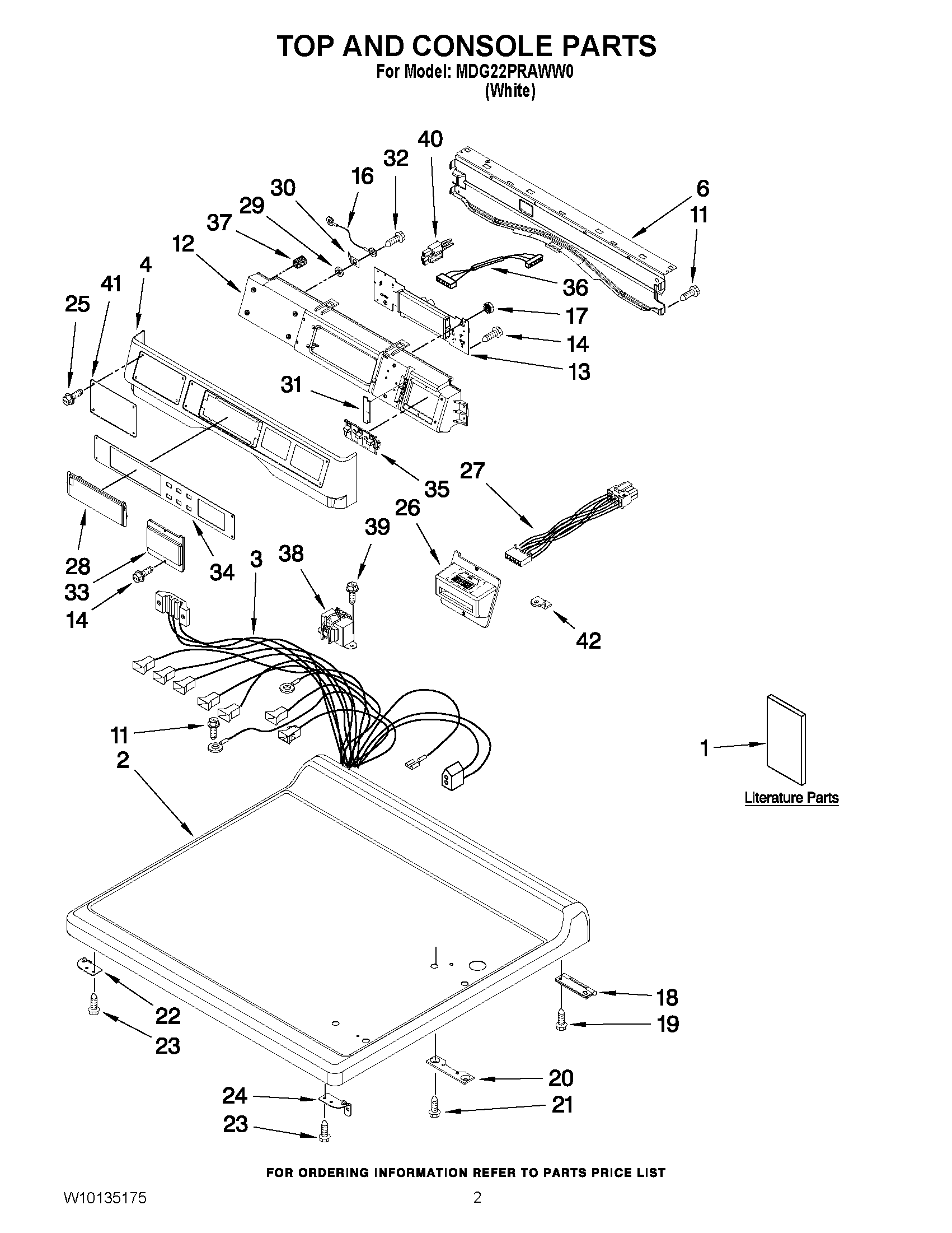 MDG22PRAWW0 01 – TOP AND CONSOLE PARTS