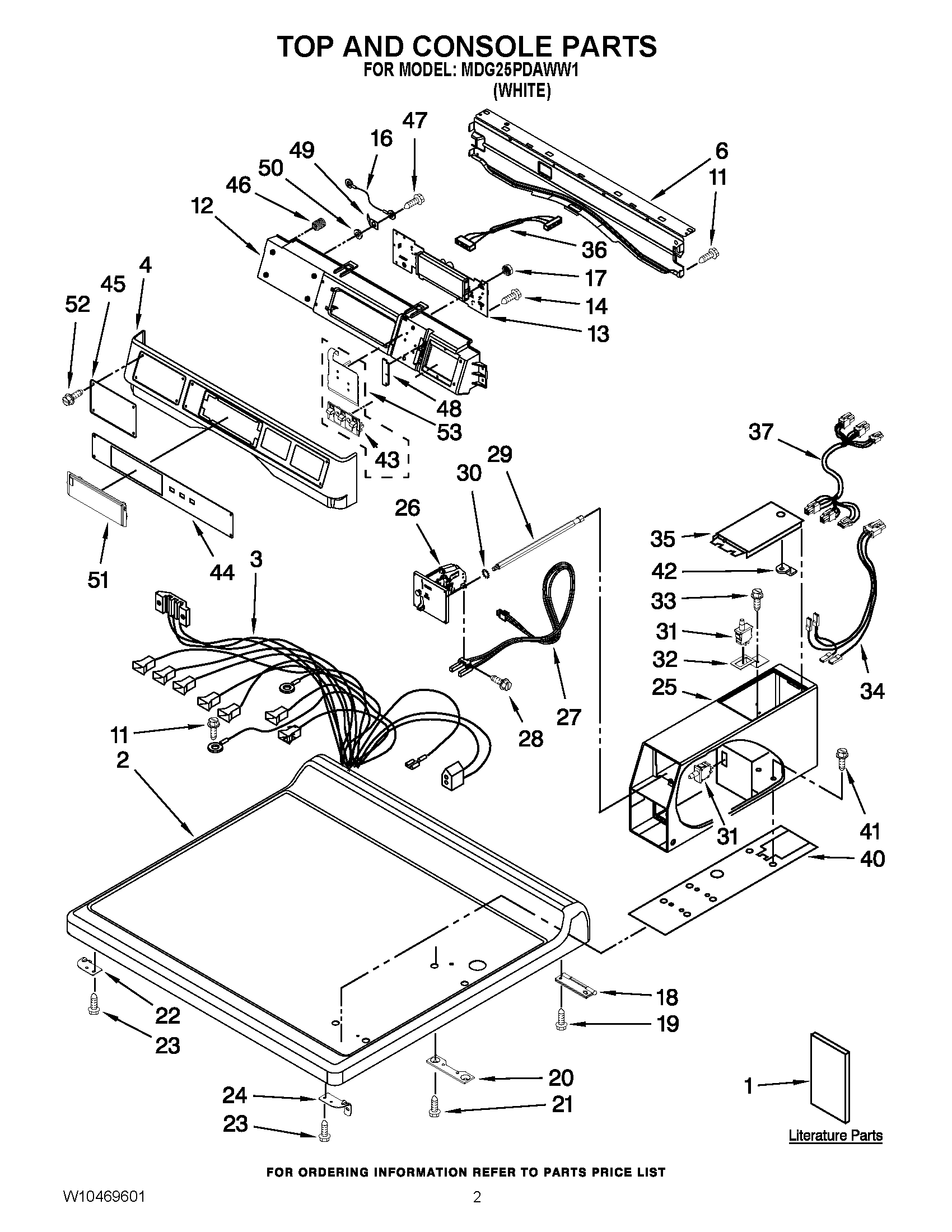 MDG25PDAWW1 01 – TOP AND CONSOLE PARTS