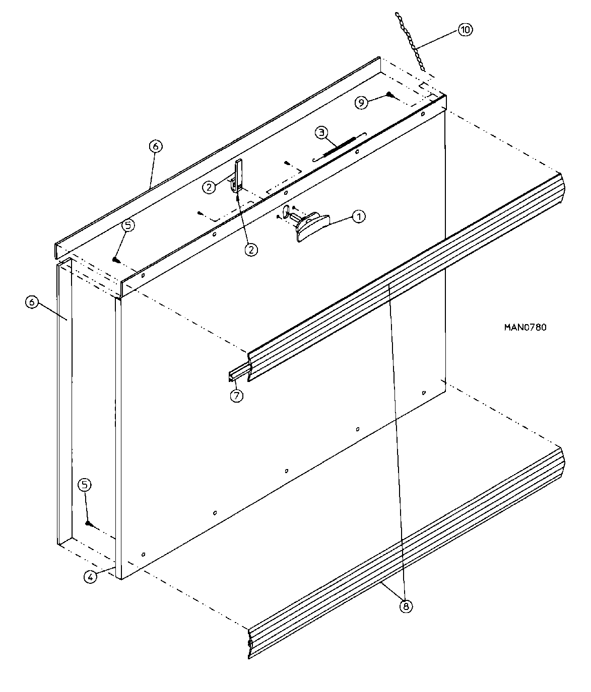 TOP TRIM STRIP W/LOCK HOLE (38-1/4“ LENGTH)