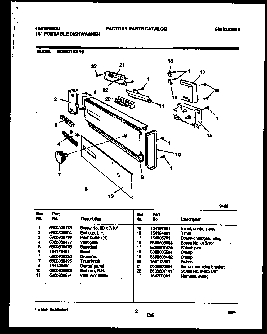 UDT518SAFP0 02 – CONTROL PANEL AND LATCH PARTS→