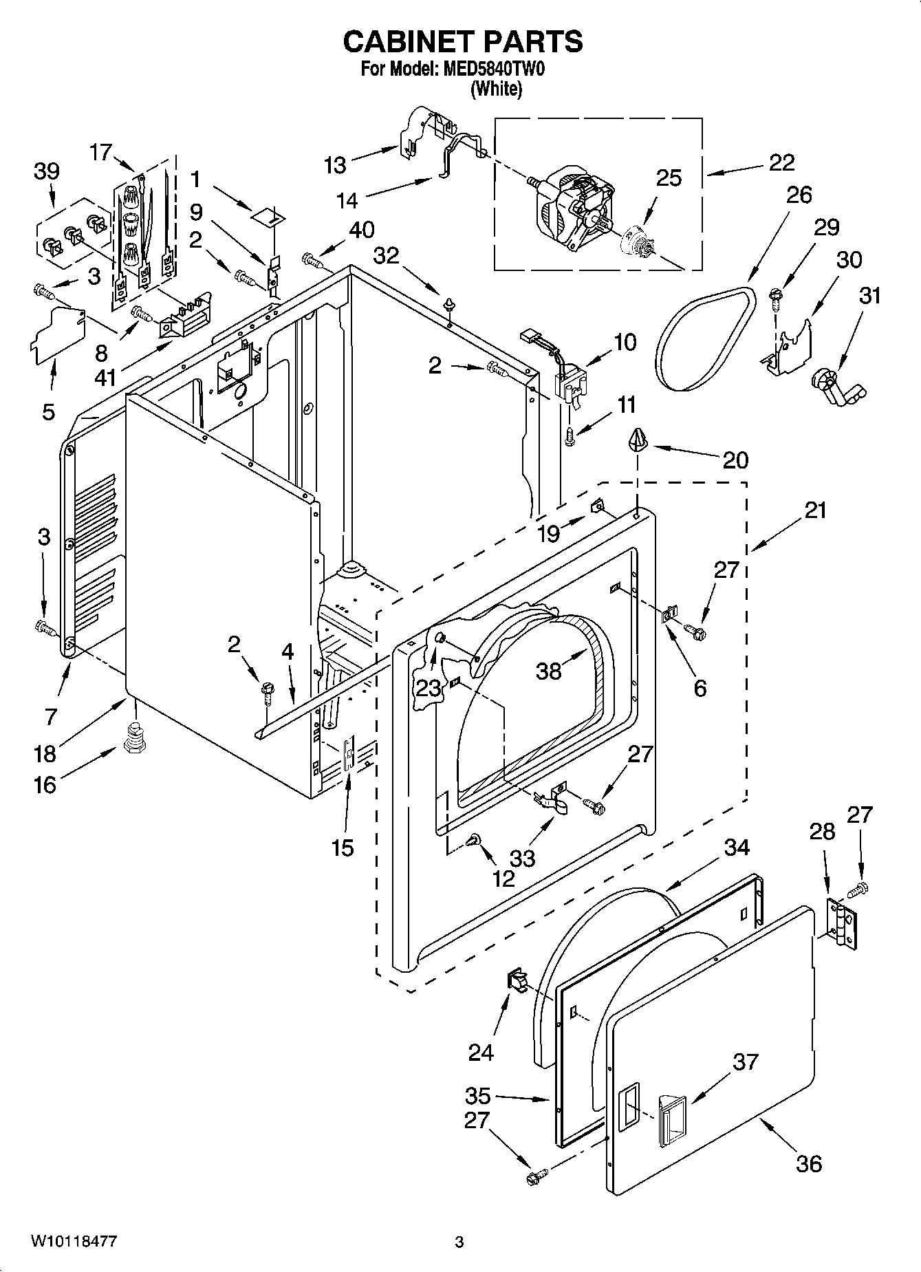MED5840TW0 02 – CABINET PARTS