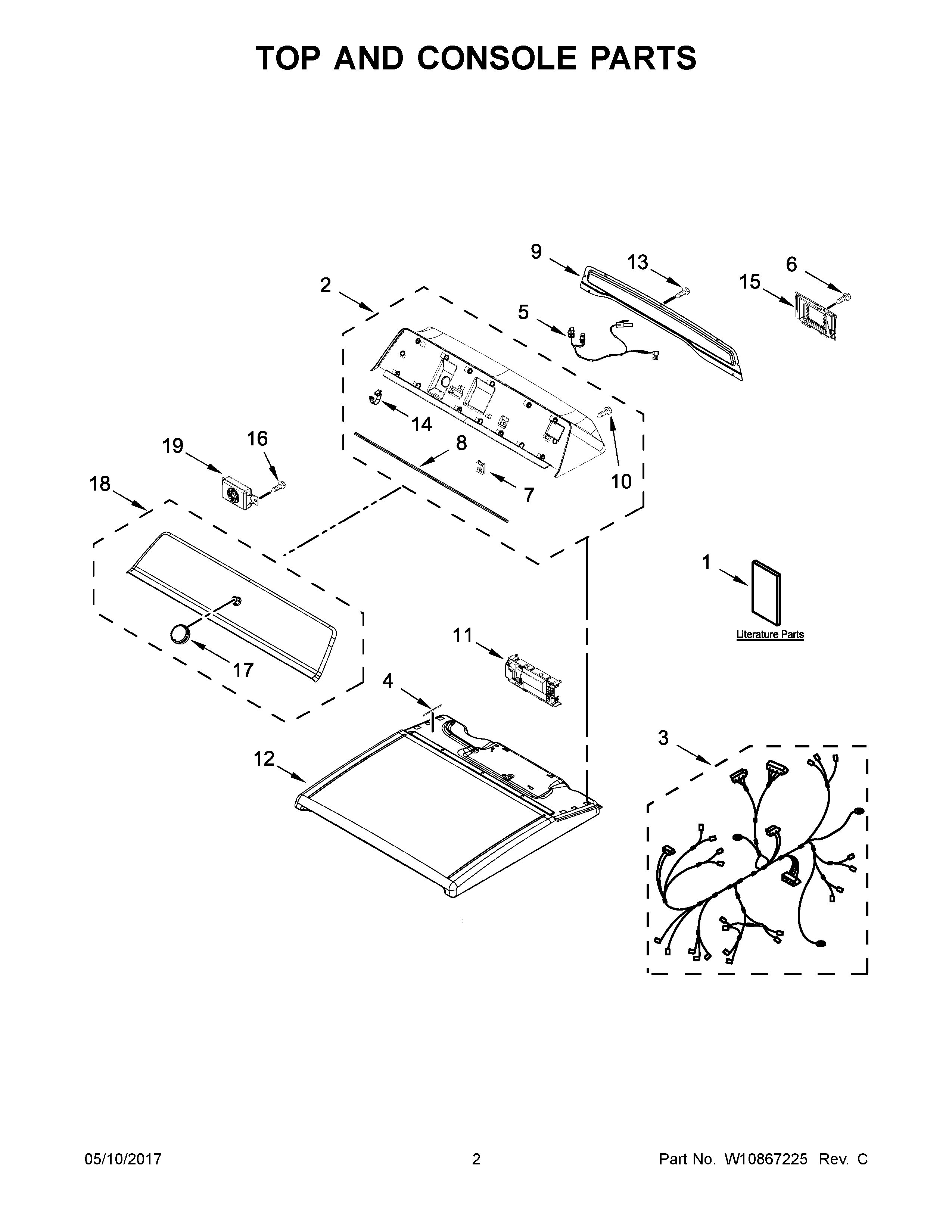 MEDB835DW3 02 – TOP AND CONSOLE PARTS