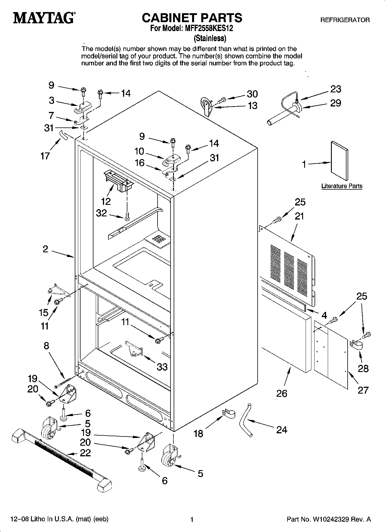 MFF2558KES12 01 – CABINET PARTS