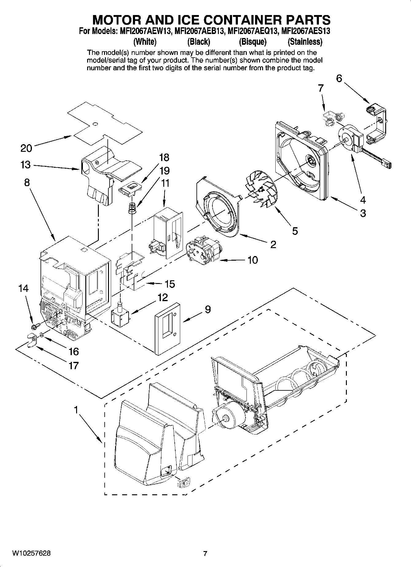 MFI2067AEB13 04 – MOTOR AND ICE CONTAINER PARTS