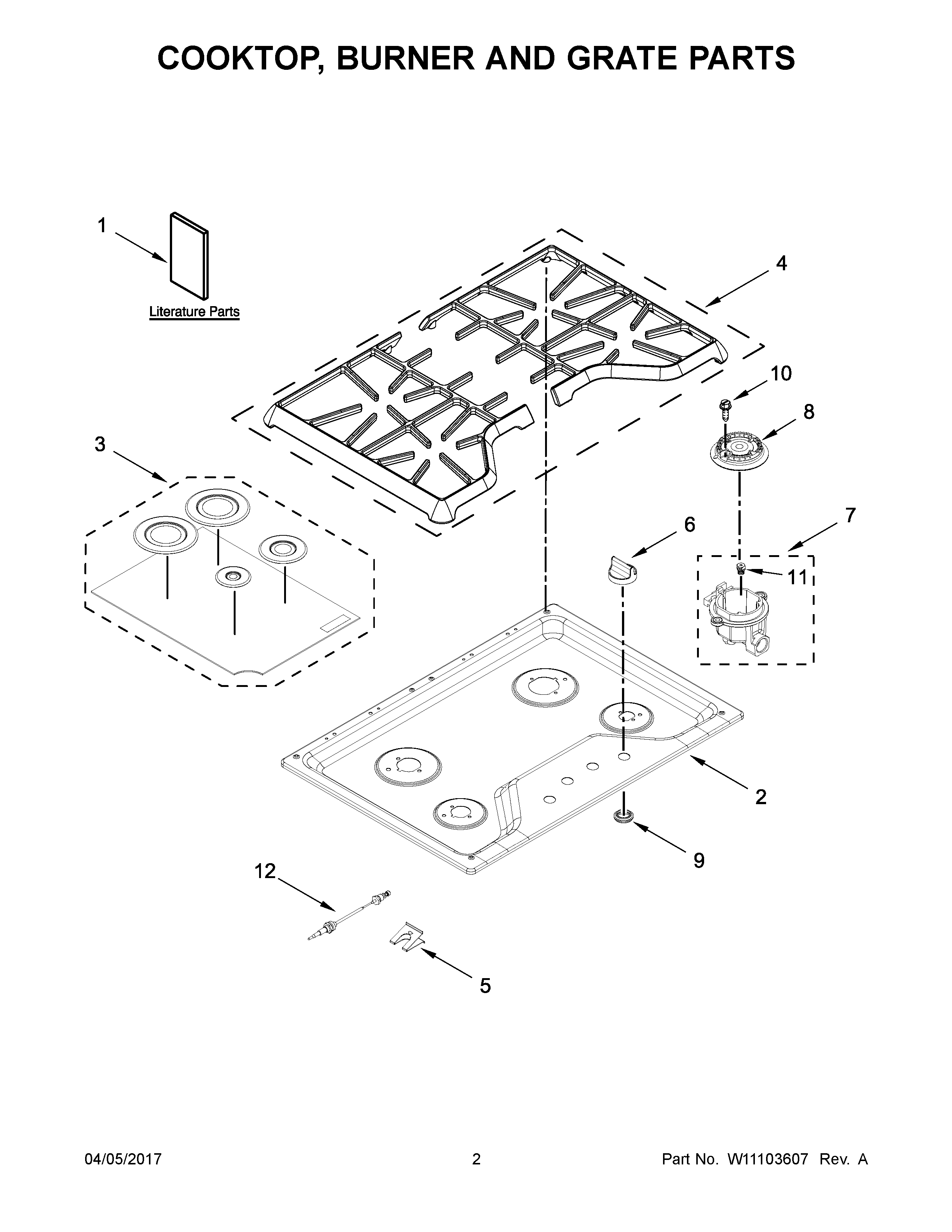 MGC7430DB00 02 – COOKTOP, BURNER AND GRATE PARTS