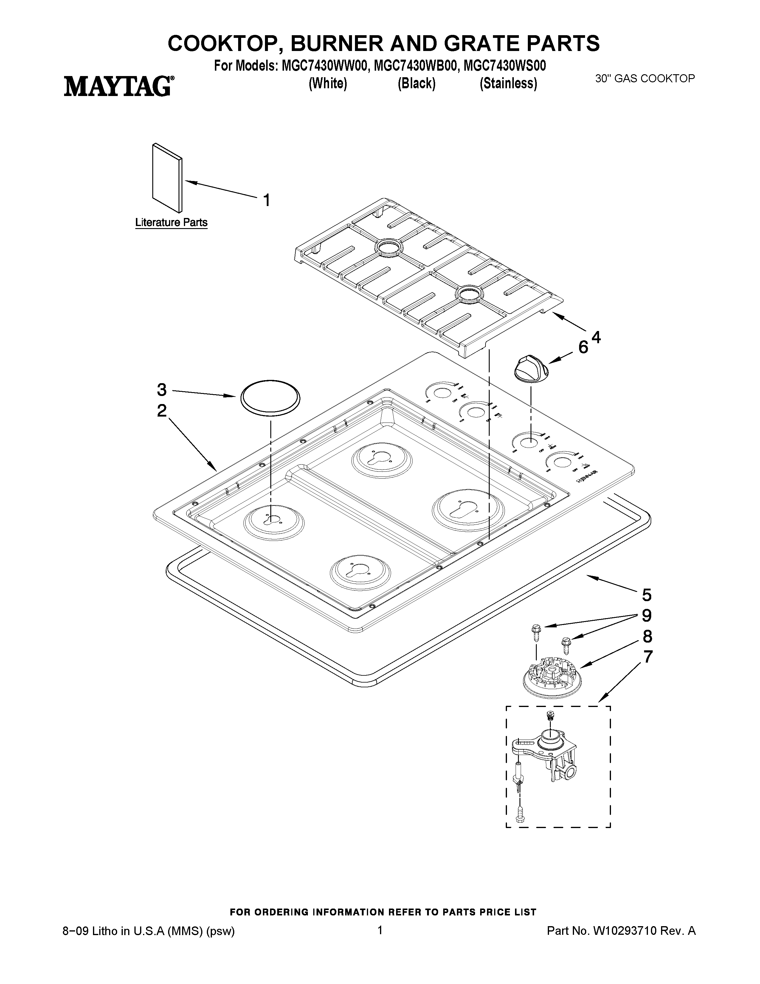 MGC7430WB00 01 – COOKTOP, BURNER AND GRATE PARTS