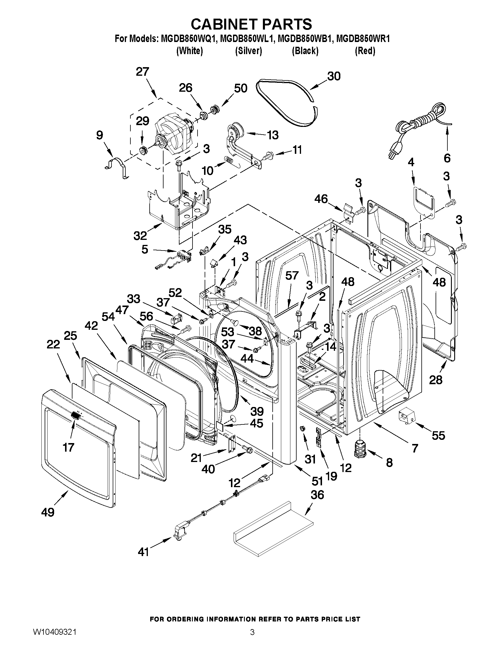 MGDB850WR1 02 – CABINET PARTS