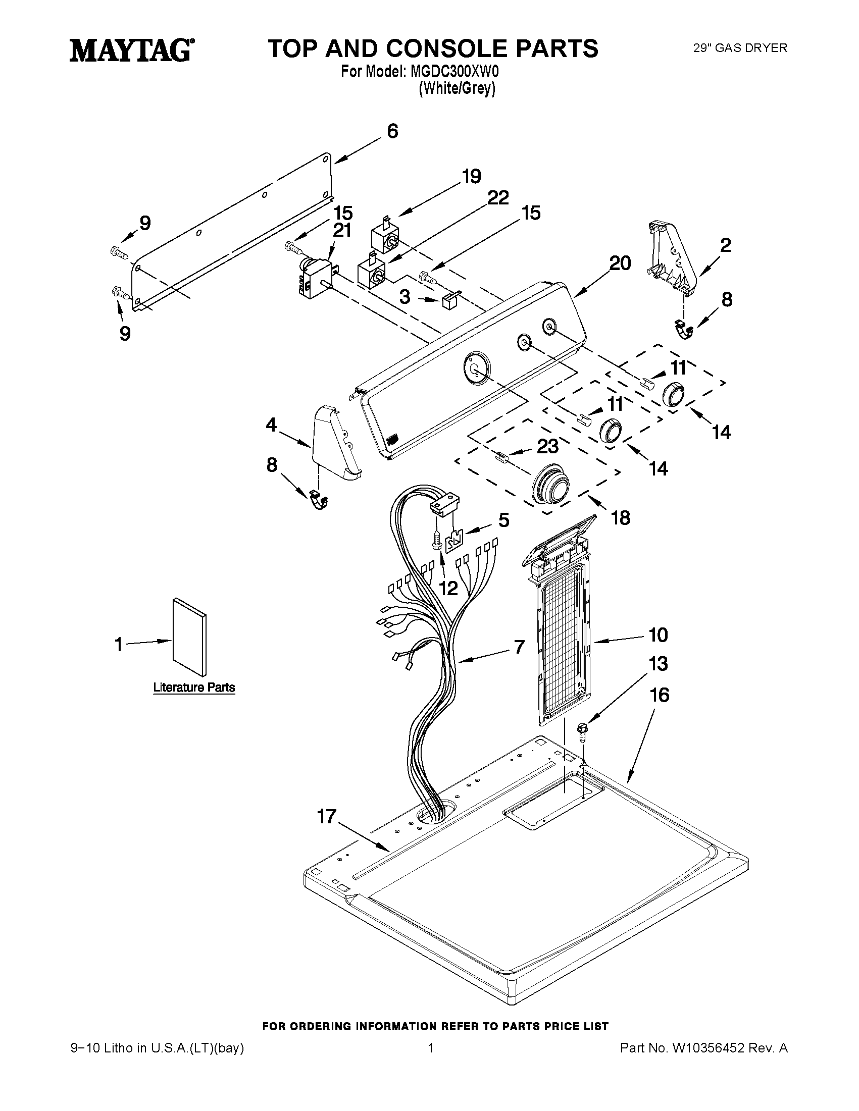 MGDC300XW0 01 – TOP AND CONSOLE PARTS