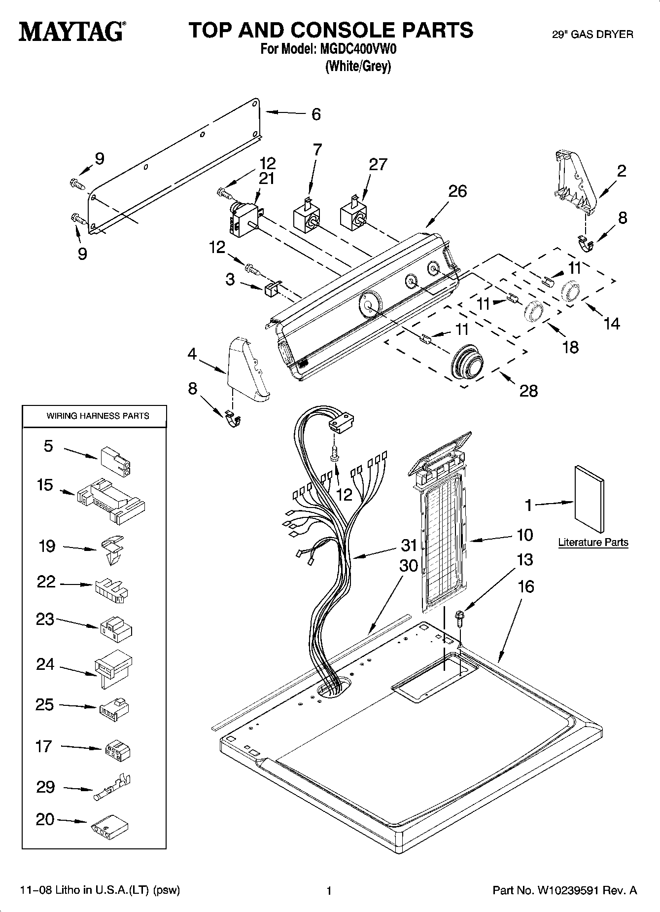MGDC400VW0 01 – TOP AND CONSOLE PARTS