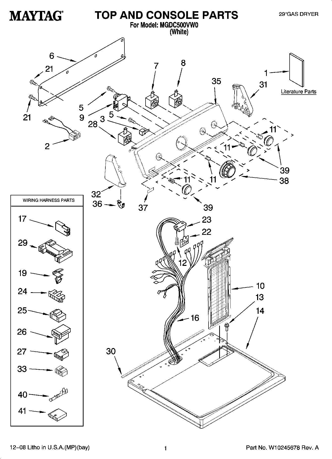 MGDC500VW0 01 – TOP AND CONSOLE PARTS