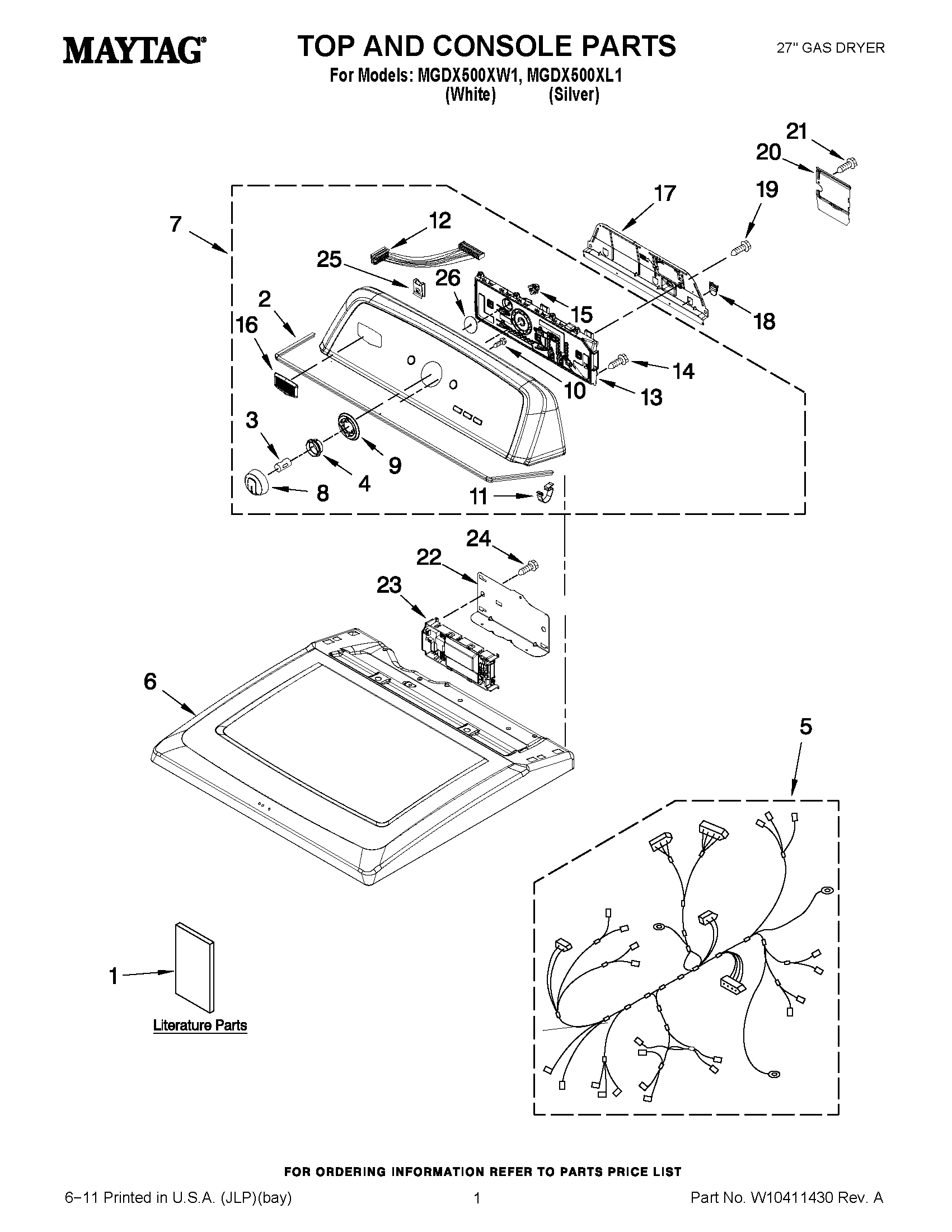 MGDX500XL1 01 – TOP AND CONSOLE PARTS