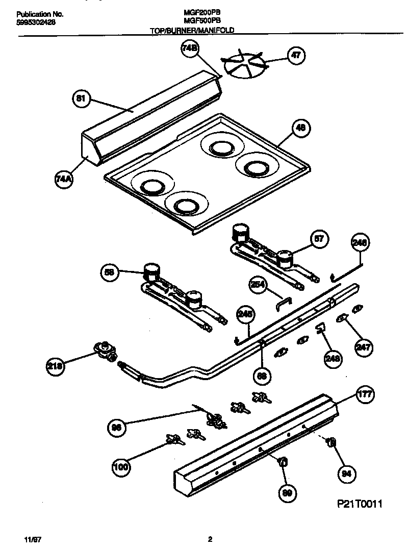 MGF500PBWC 02 – TOP/BURNER/MANIFOLD