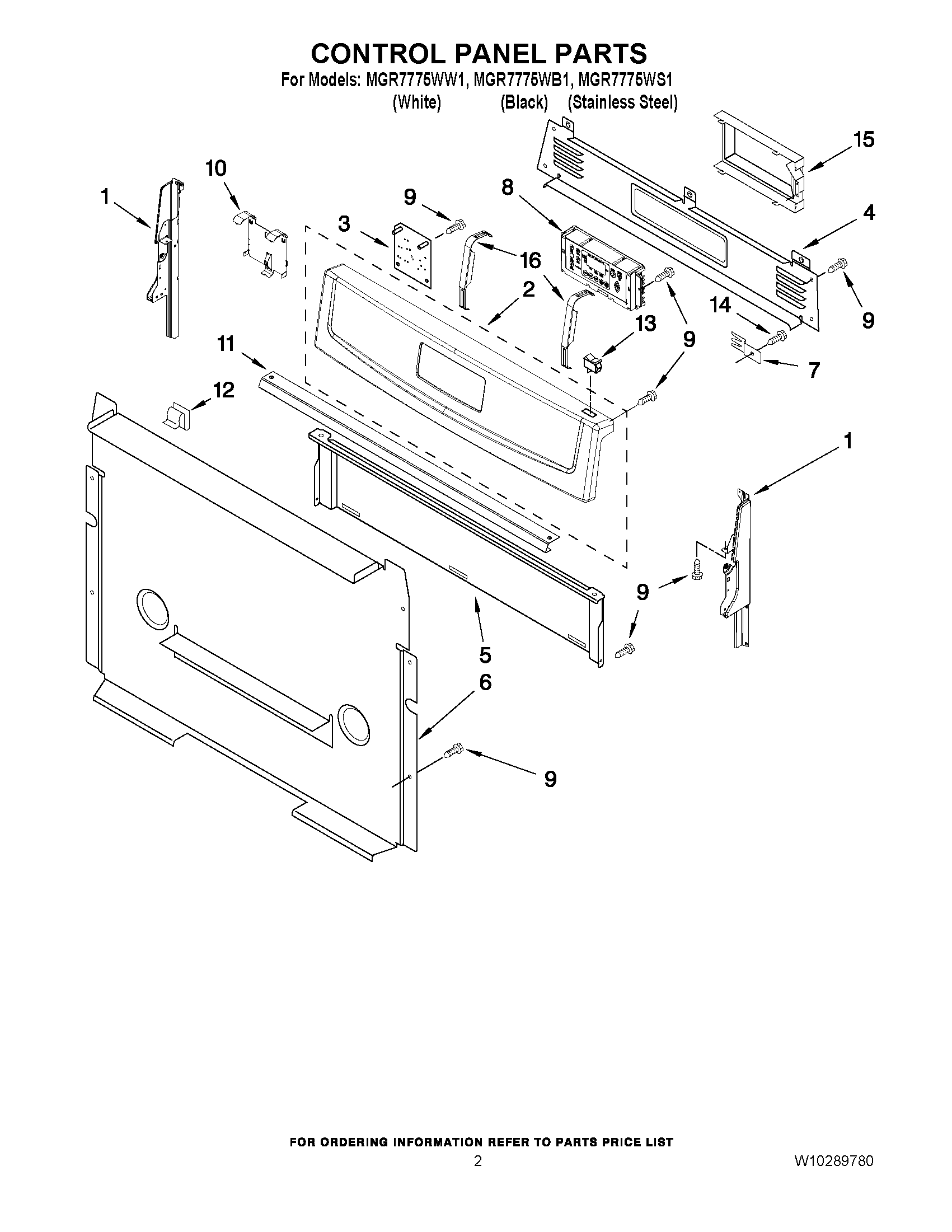 MGR7775WB1 02 – CONTROL PANEL PARTS