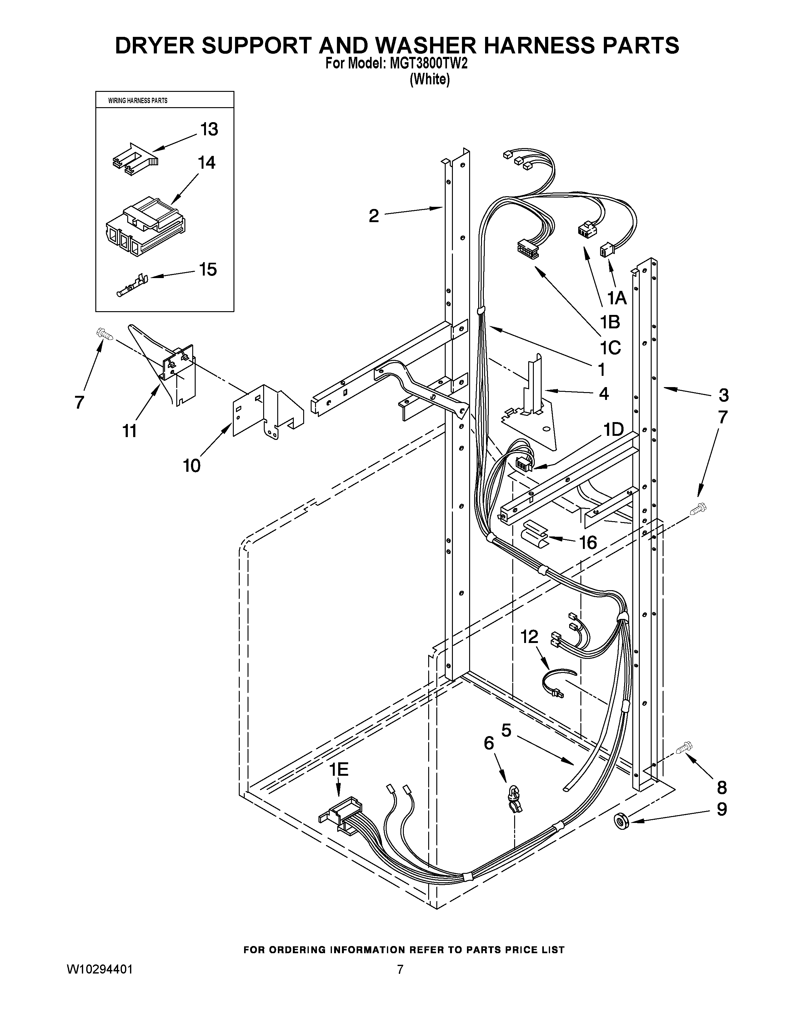 MGT3800TW2 05 – DRYER SUPPORT AND WASHER HARNESS PARTS
