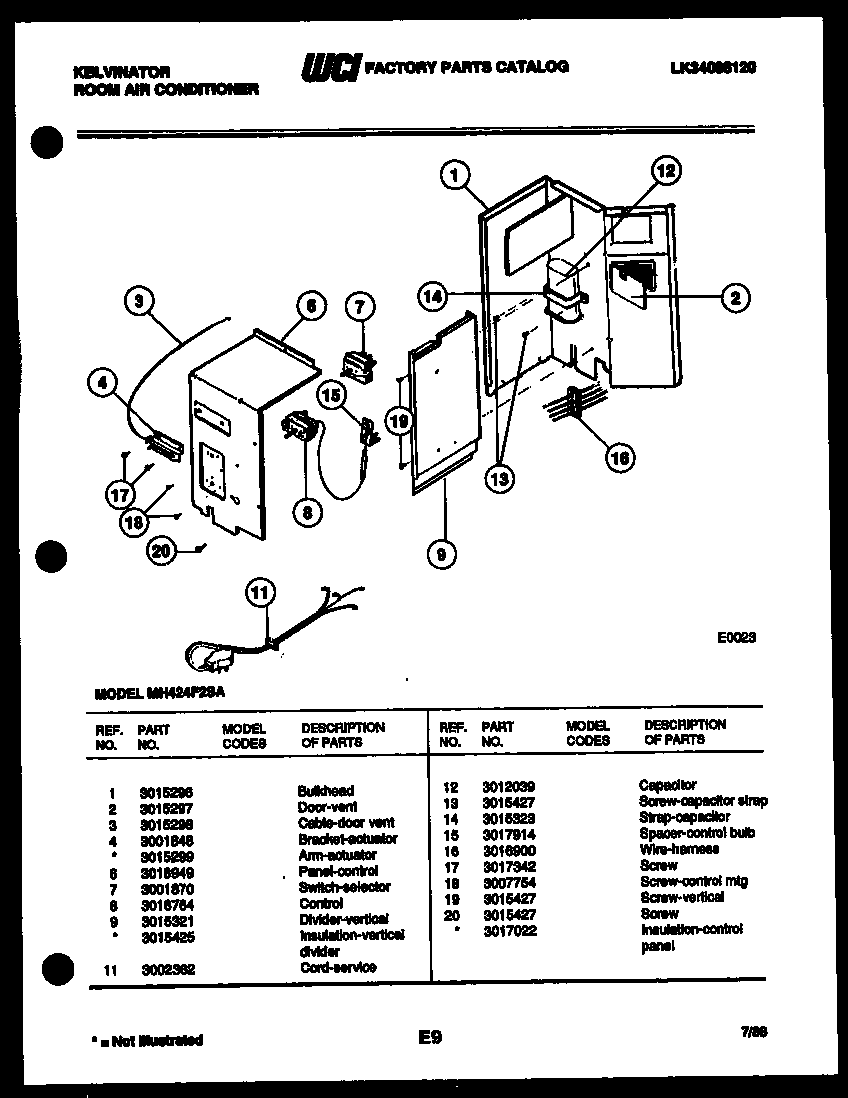MH424F2SA 03 – ELECTRICAL PARTSadmin2025-04-26T09:22:06+00:00MH424F2SA 03 – ELECTRICAL PARTS ProductsPositionProduct*18073INSULATION-PANEL CNTRL1WCI 30152962WCI 30152973CABLE - DOR VENT4WCI 30018484AWCI 30152996WCI 30189497SWITCH-SEL8CONTROL9AWCI 30154259WCI 301532111WCI 300236212WCI 301203914STRAP - CAPACITATOR15SPACER - CONTROL BULB16HARNESS-WIRE17SCREW18SCREW-CONT AND SWITCH MTG (NON-ILLUSTRATED)20134178901 Frigidaire Screw