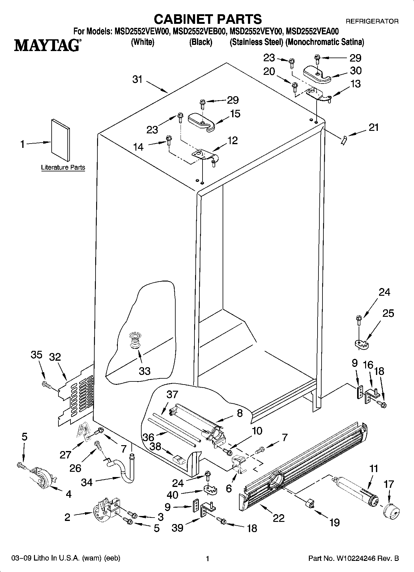 MSD2552VEY00 01 – CABINET PARTS