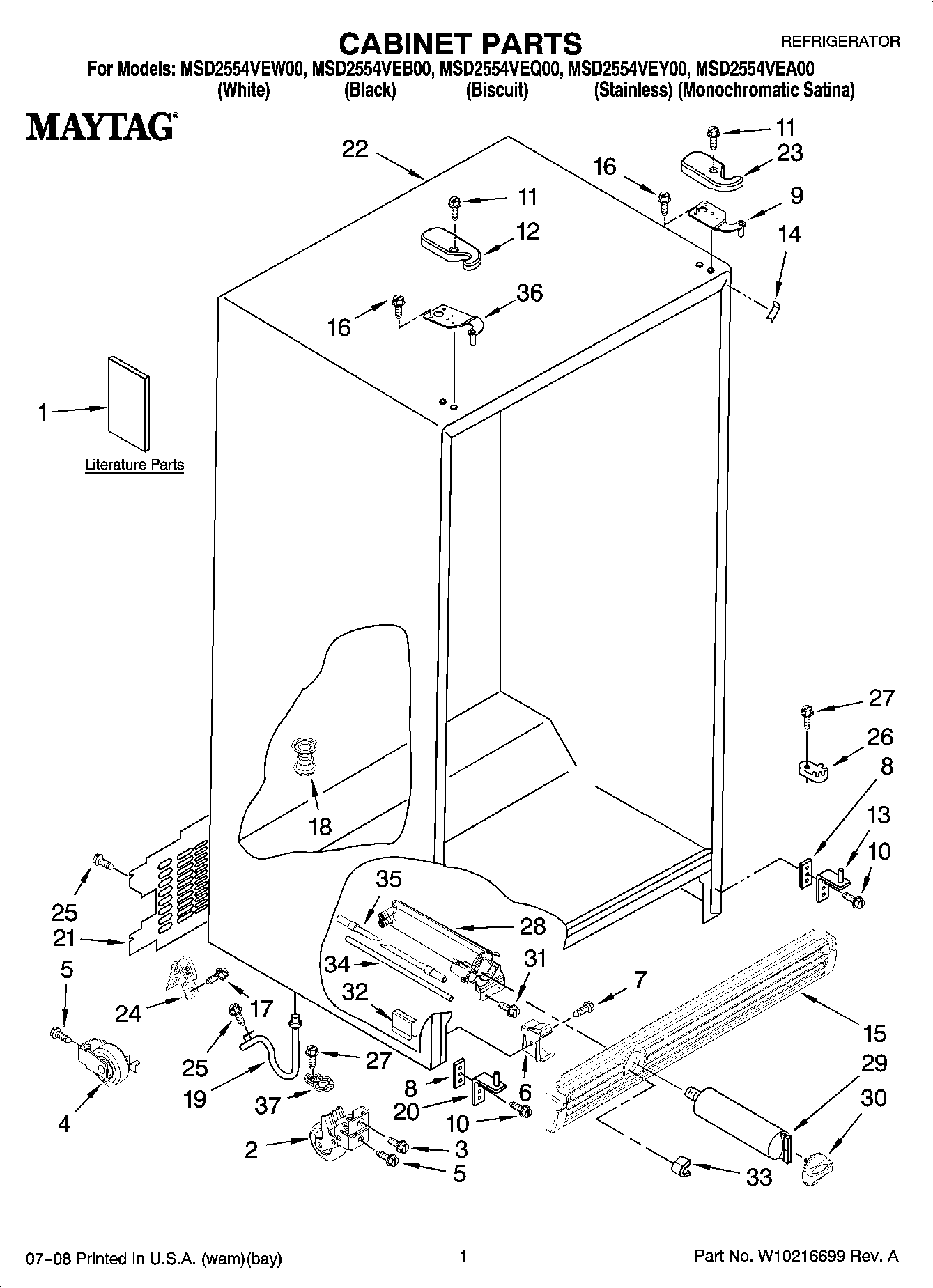 MSD2554VEQ00 01 – CABINET PARTS