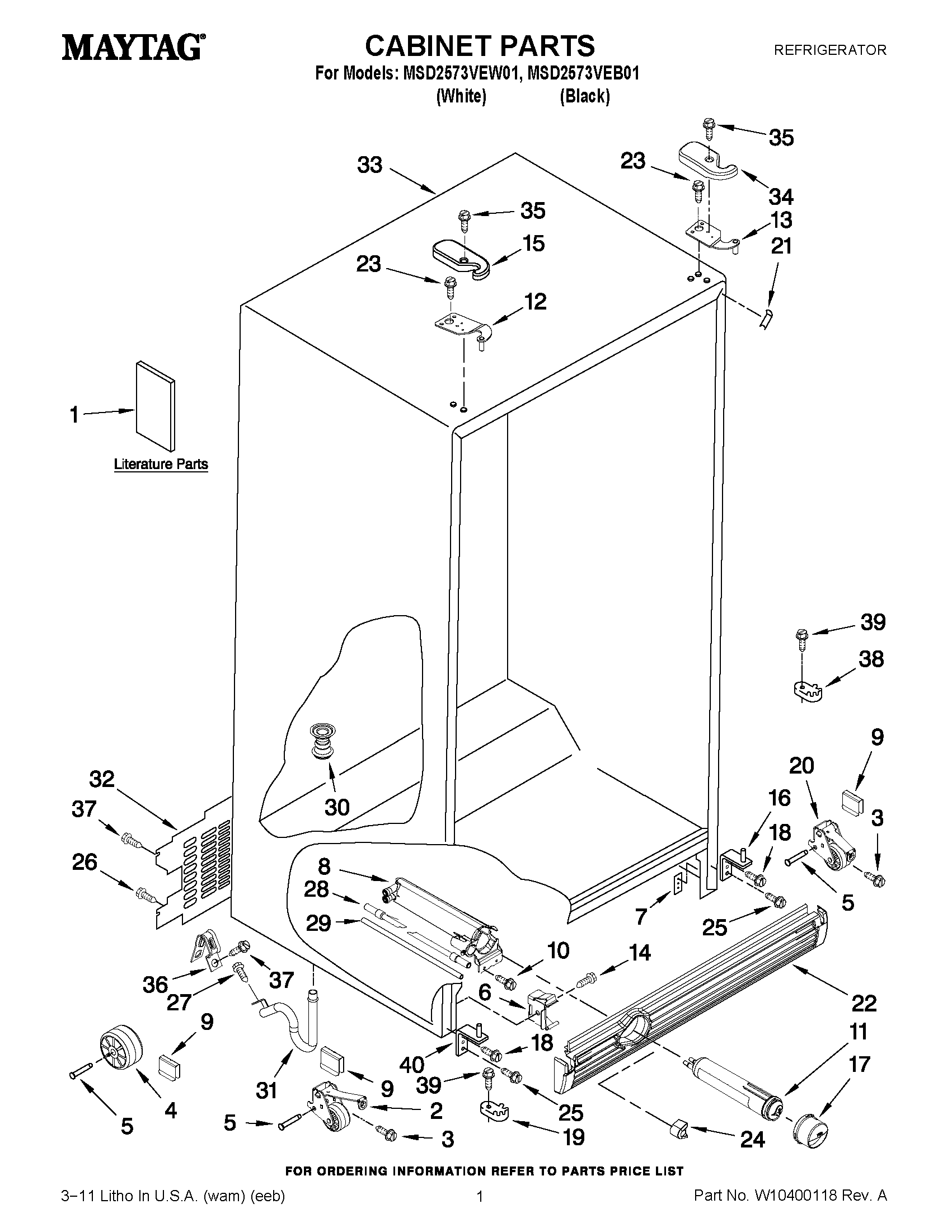 MSD2573VEW01 01 – CABINET PARTS