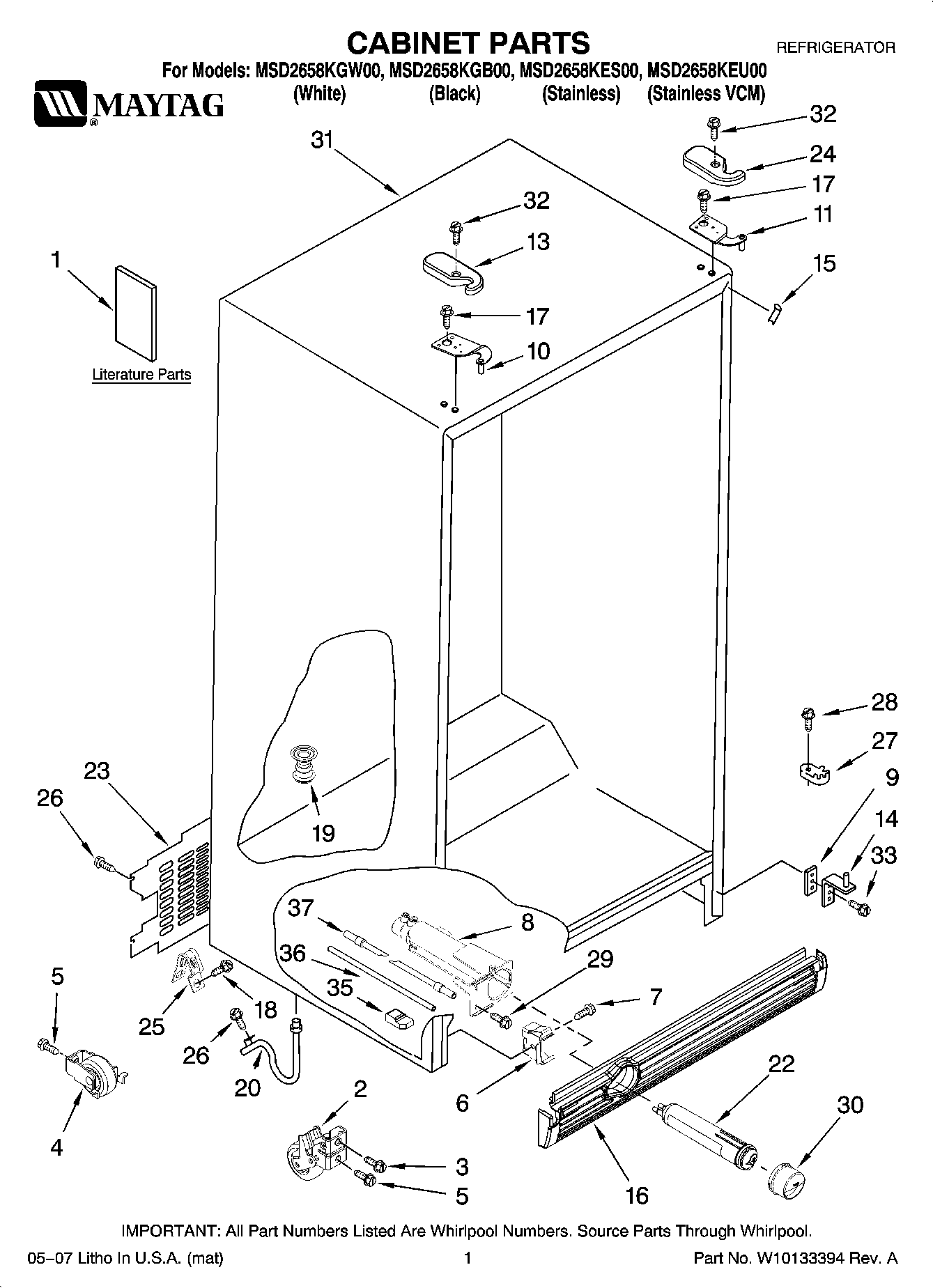 MSD2658KGW00 01 – CABINET PARTS