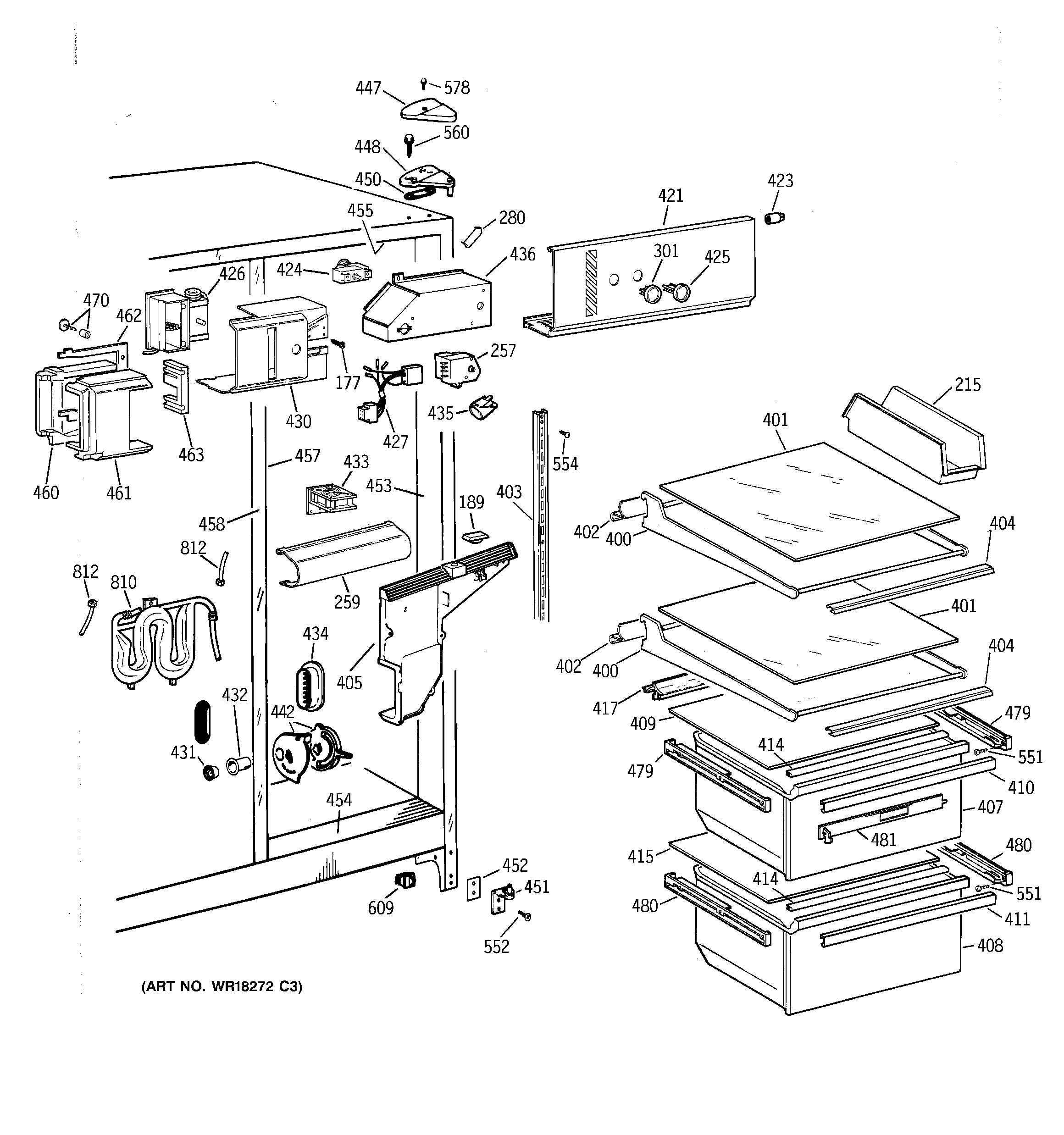 WR72X239 GE Refrigerator Left Hand Slide Assembly