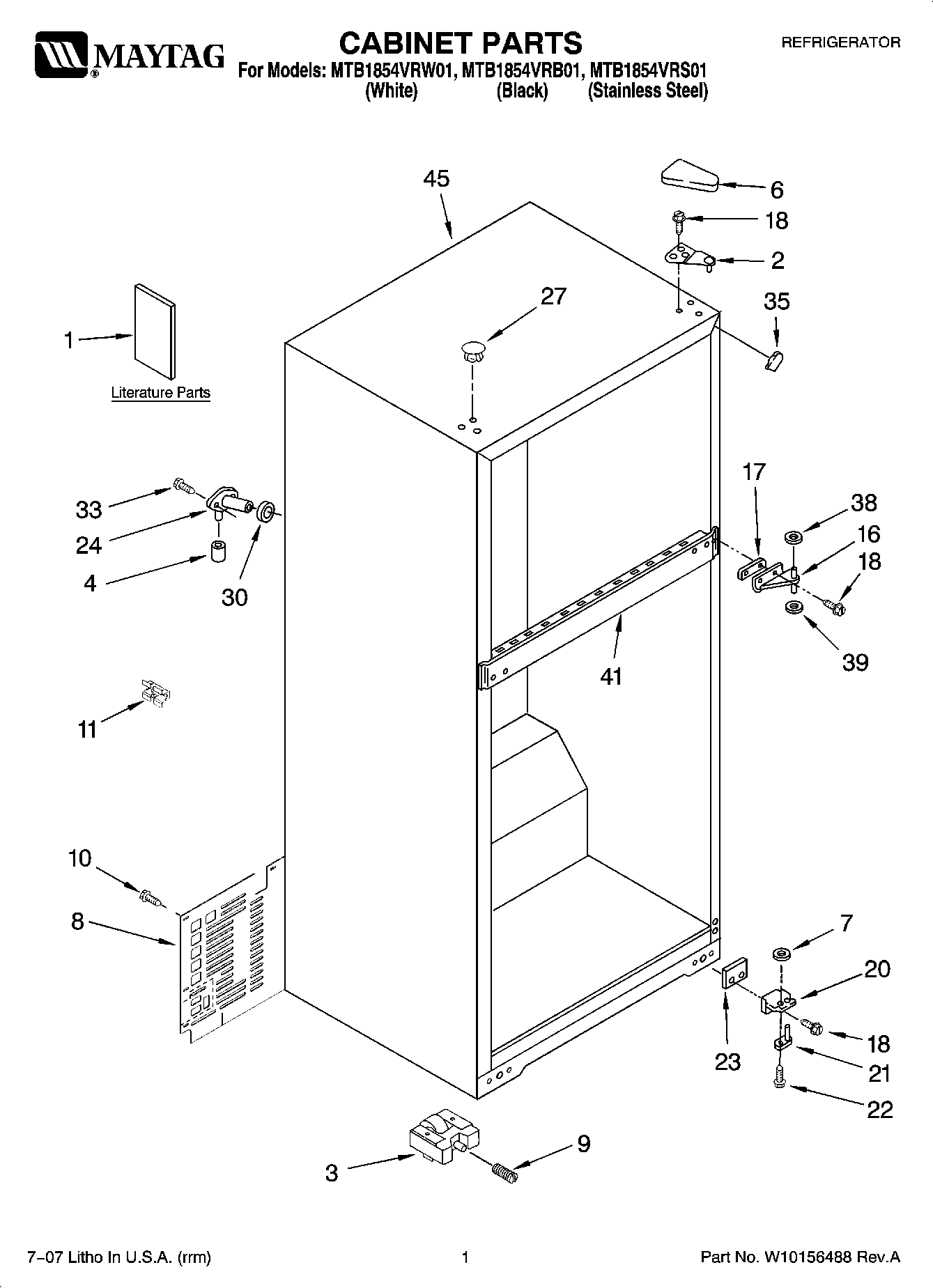 MTB1854VRB01 01 – CABINET PARTS