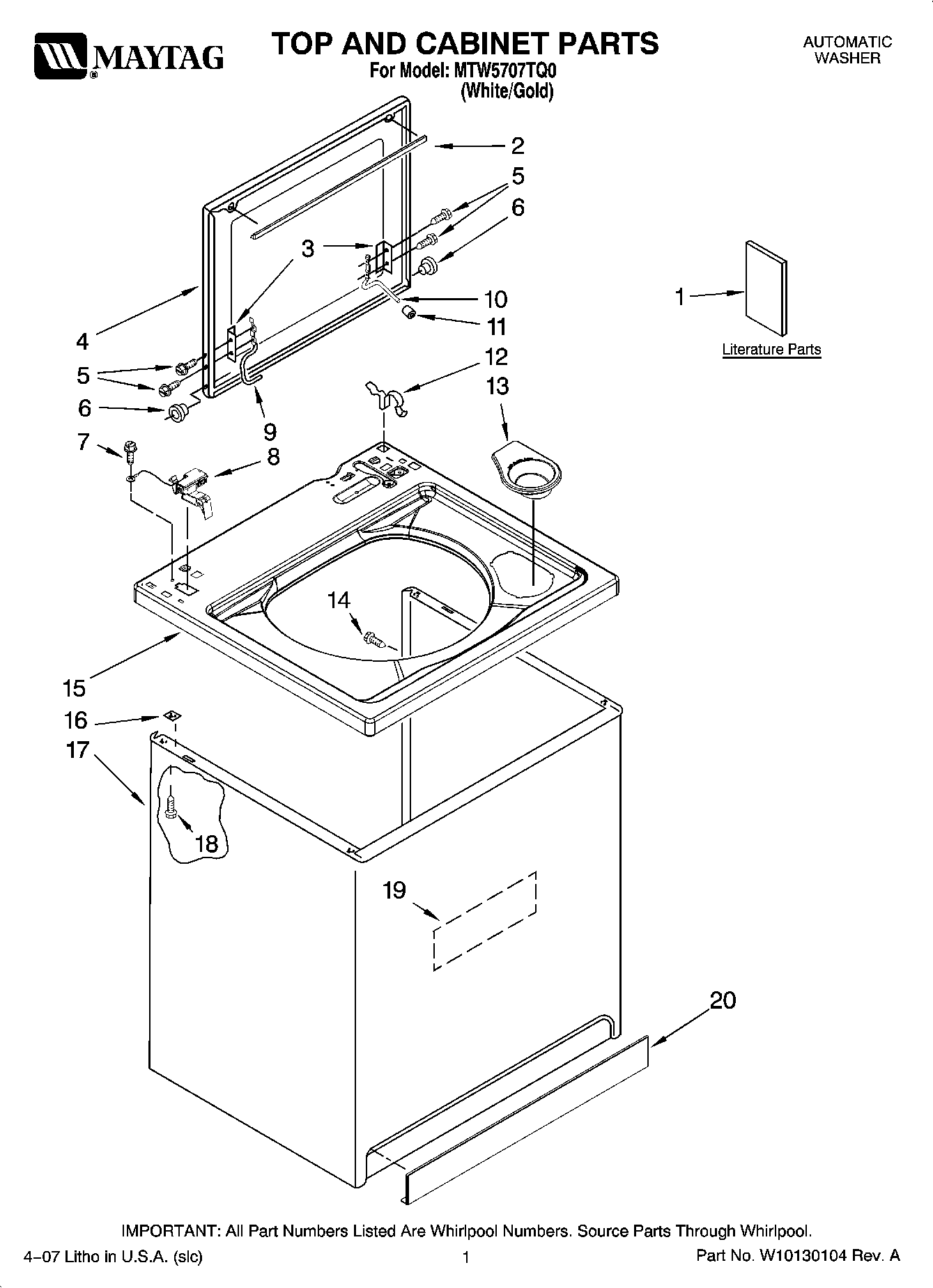 MTW5707TQ0 01 – TOP AND CABINET PARTS