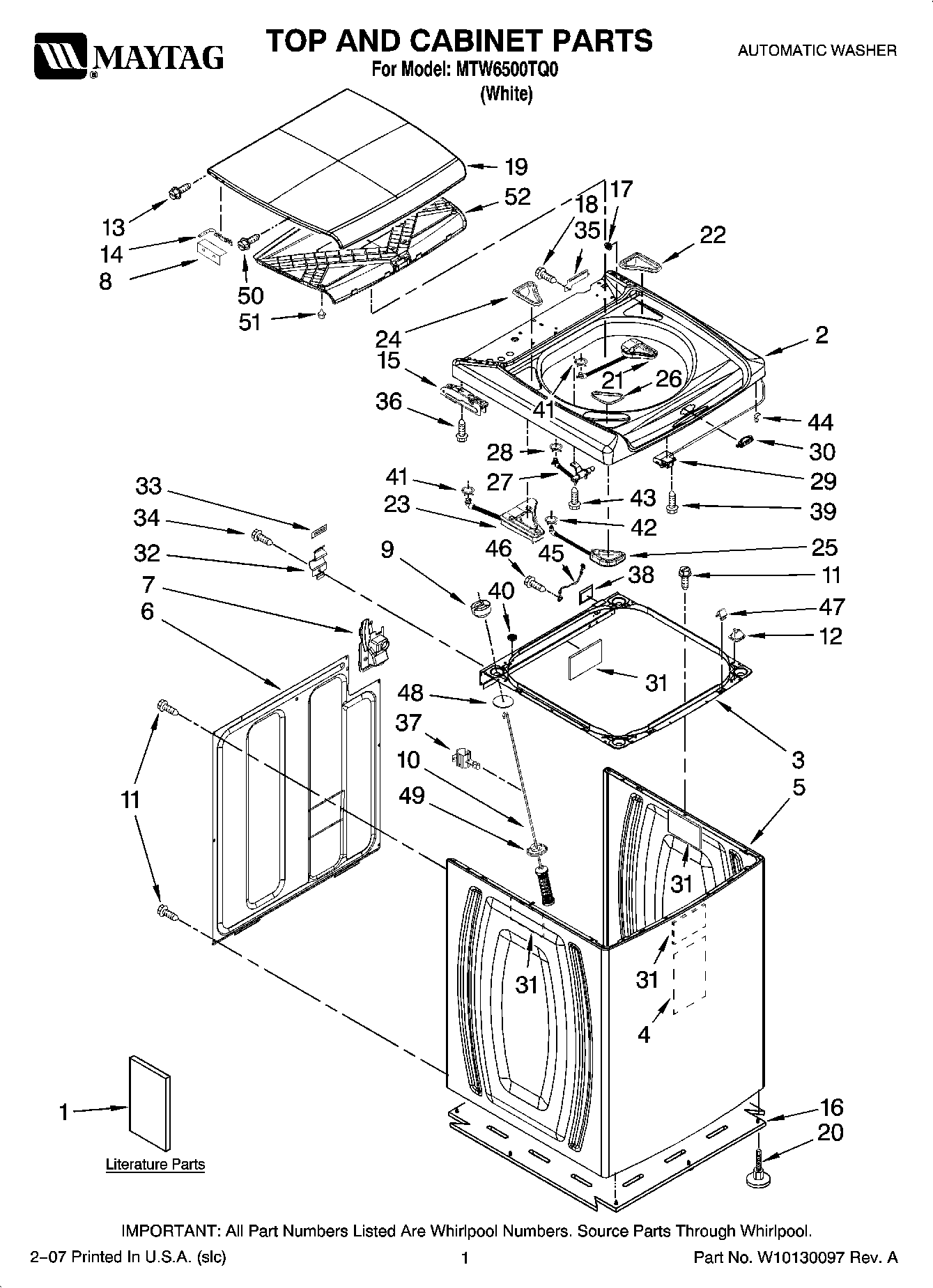 MTW6500TQ0 01 – TOP AND CABINET PARTS