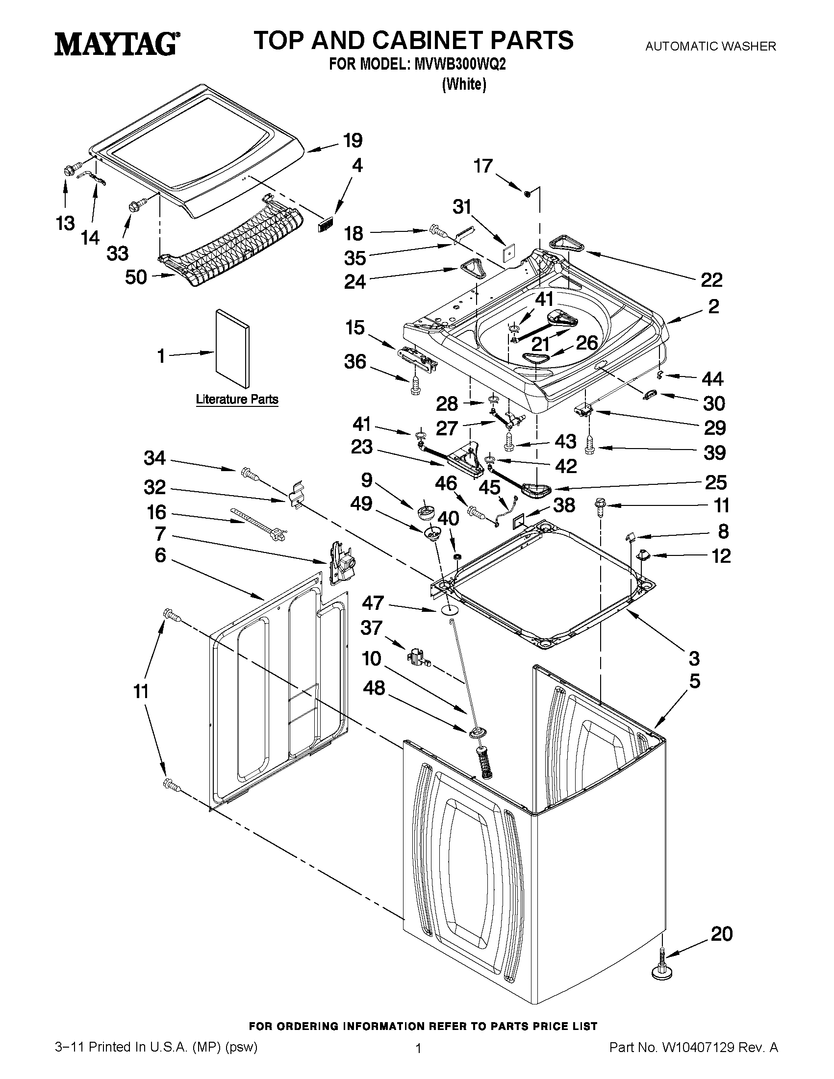 MVWB300WQ2 01 – TOP AND CABINET PARTS