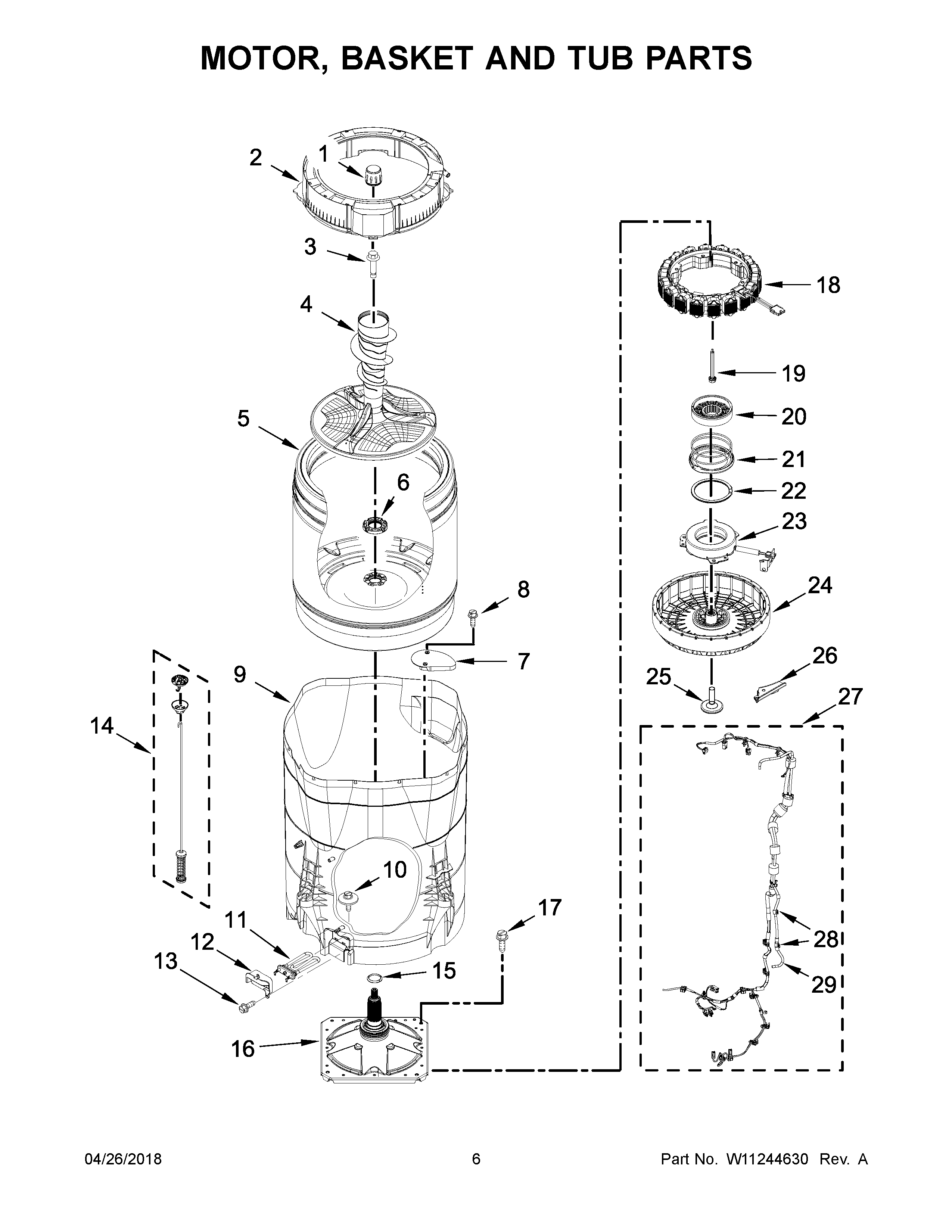 MVWB965HW0 04 – MOTOR, BASKET AND TUB PARTS