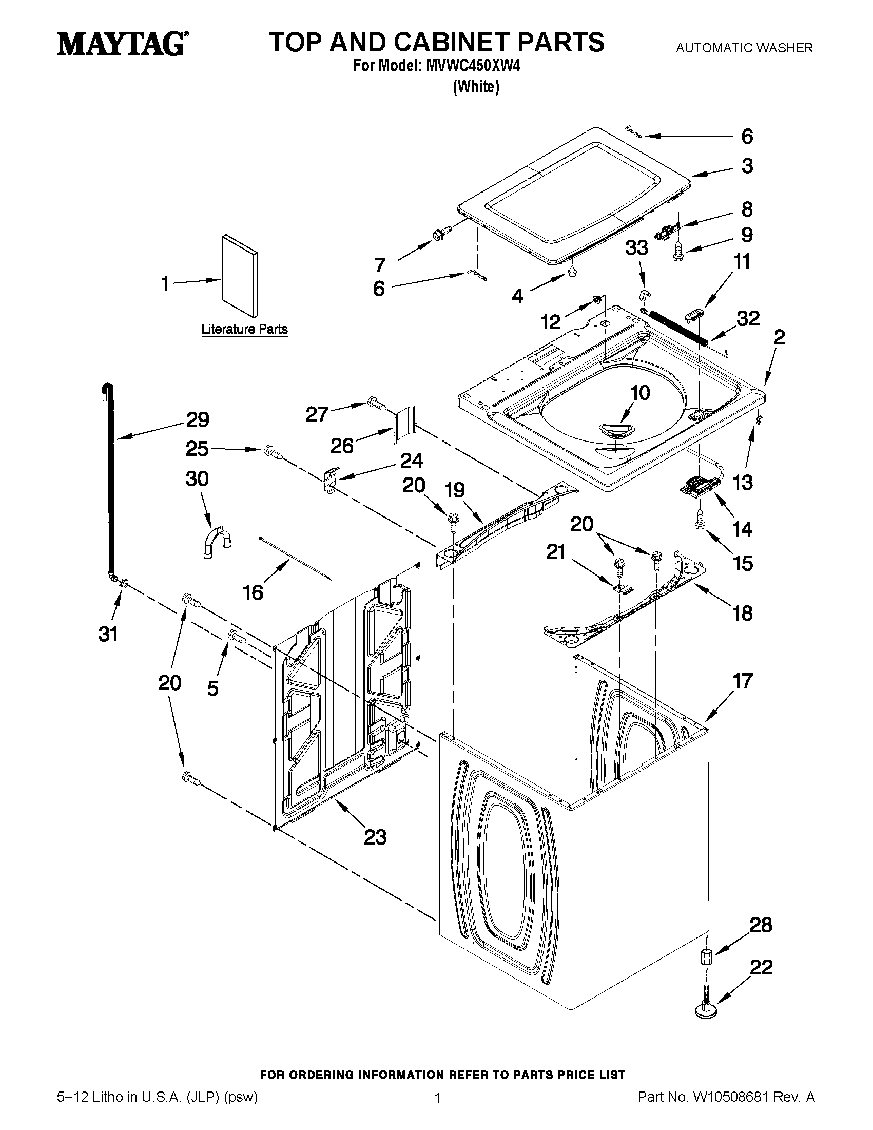 MVWC450XW4 01 – TOP AND CABINET PARTS