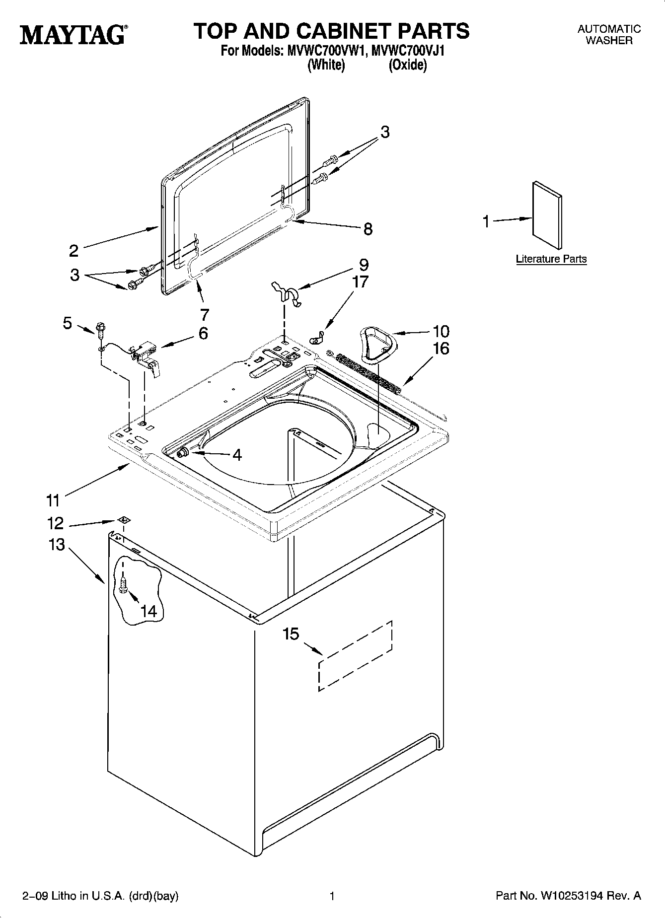 MVWC700VJ1 01 – TOP AND CABINET PARTS