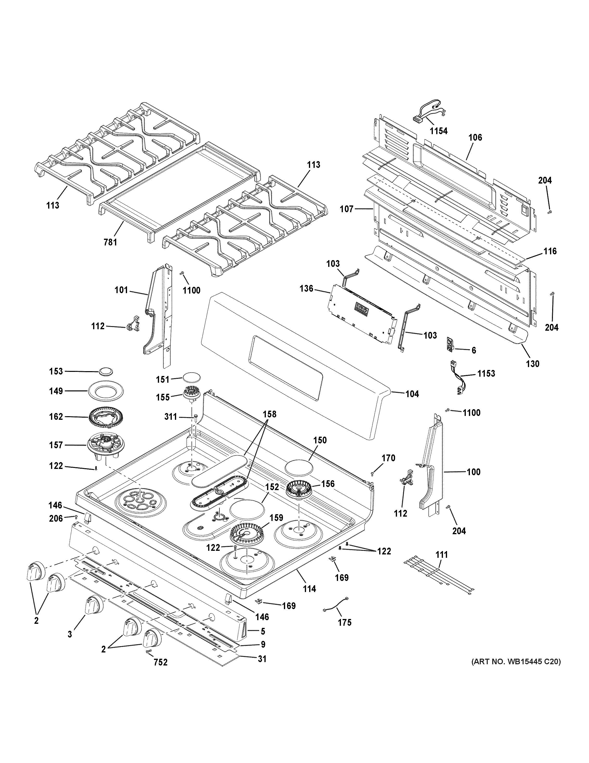 P2B935YP1FS CONTROL PANEL & COOKTOP
