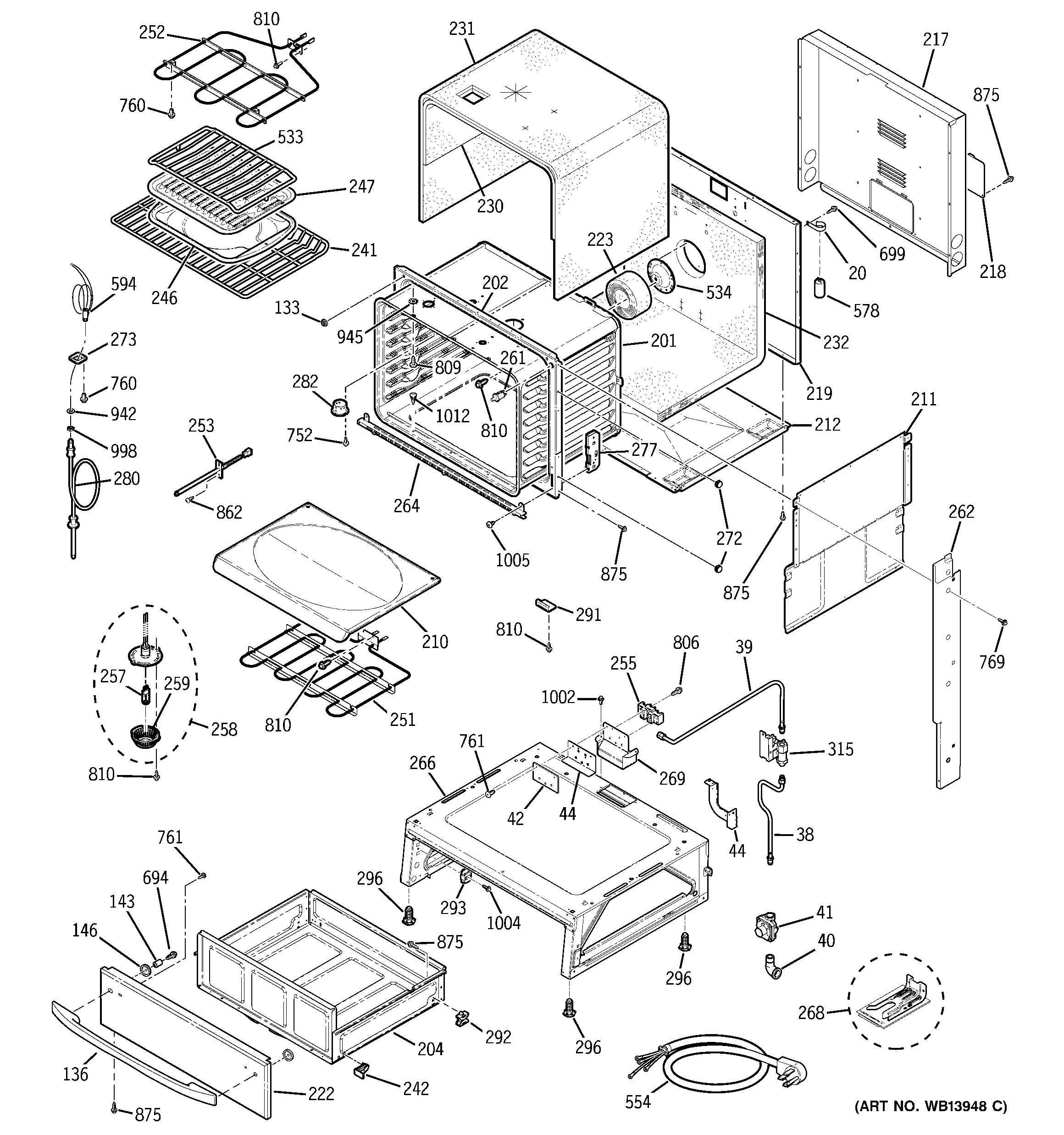 WB55T10178 GE Oven Mechanical Drawer Body Assembly