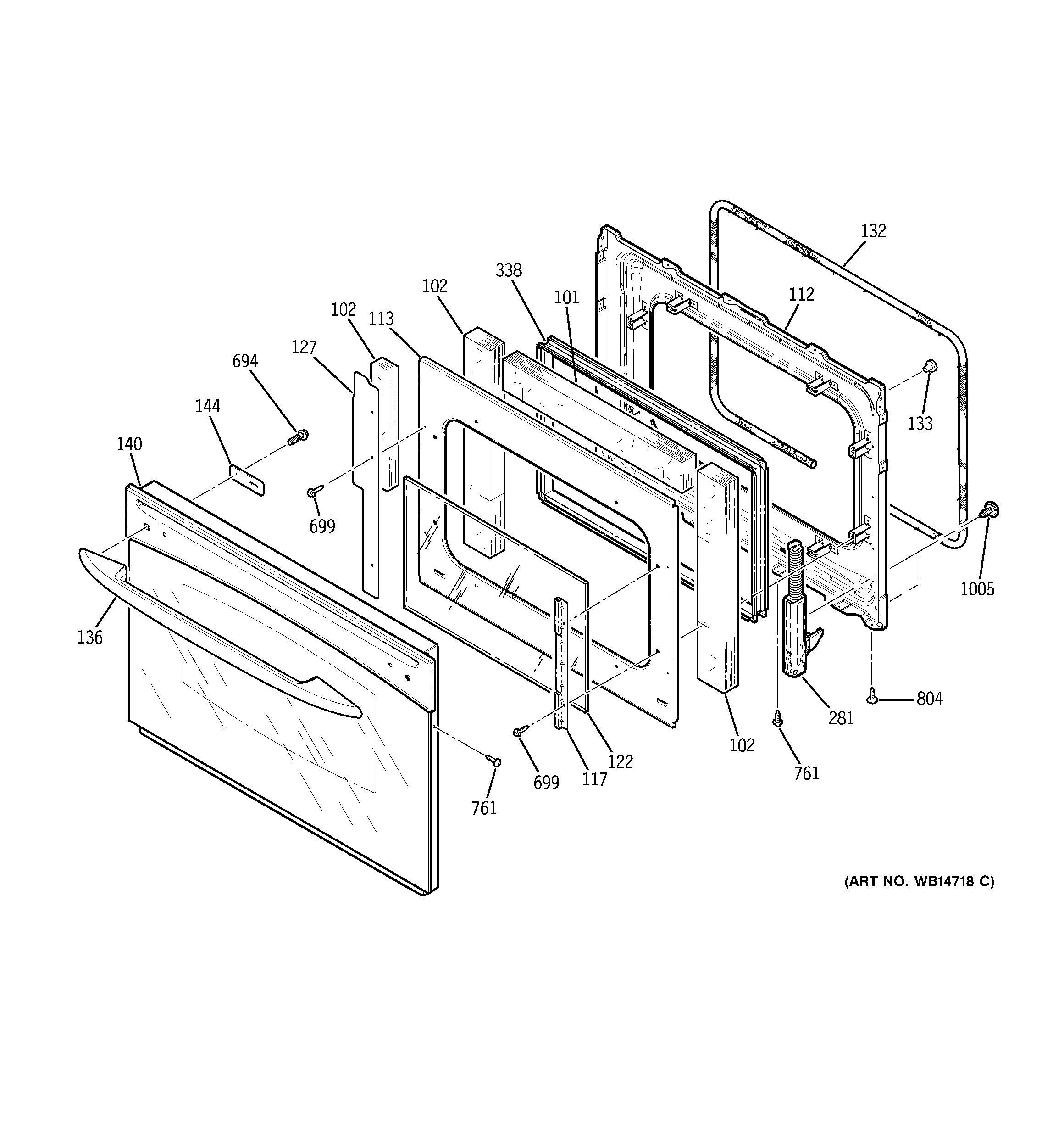 WB55T10148 GE Oven Door Liner Assembly