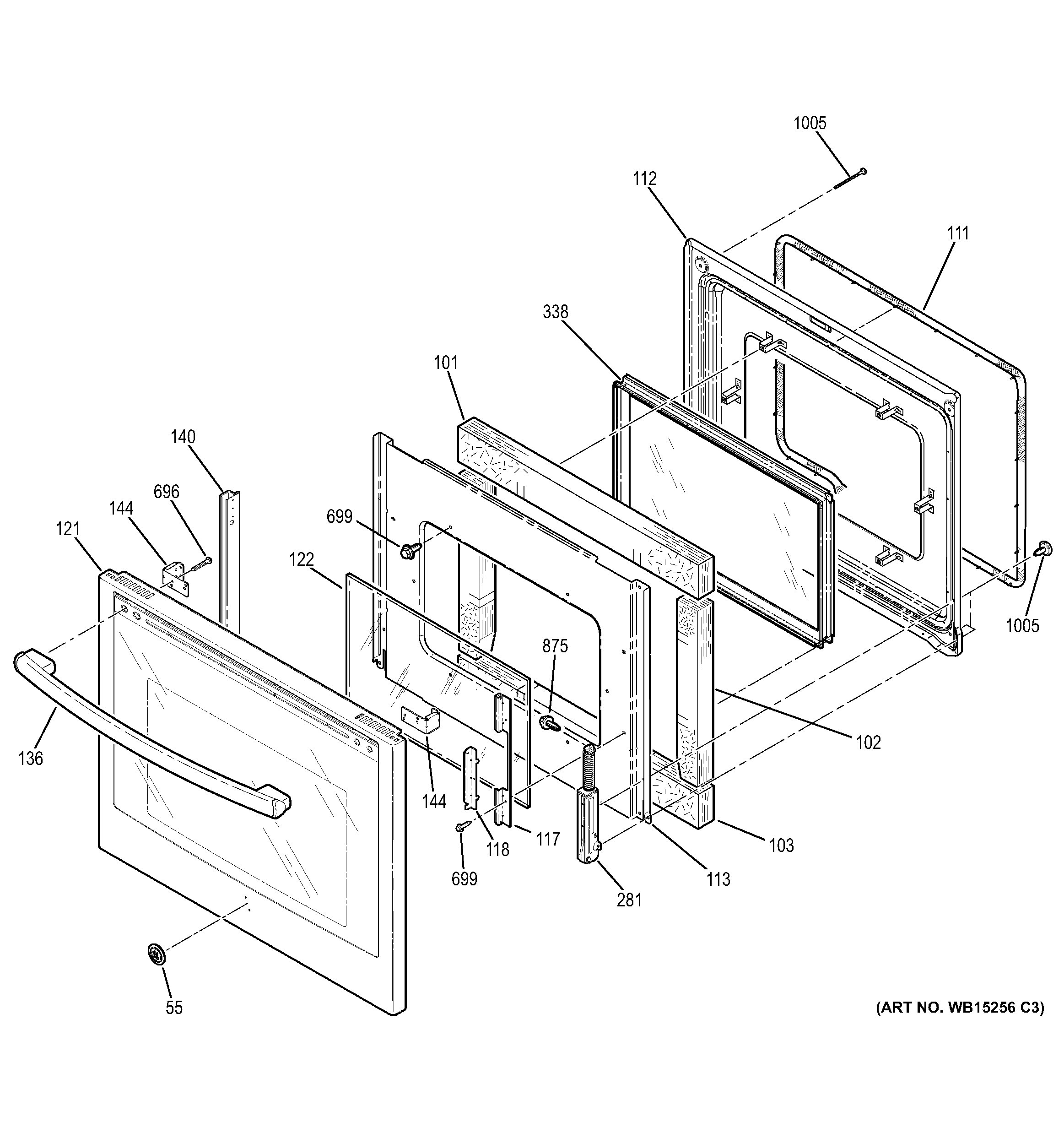 WB55T10203 GE Oven Door Liner Assembly (Black)
