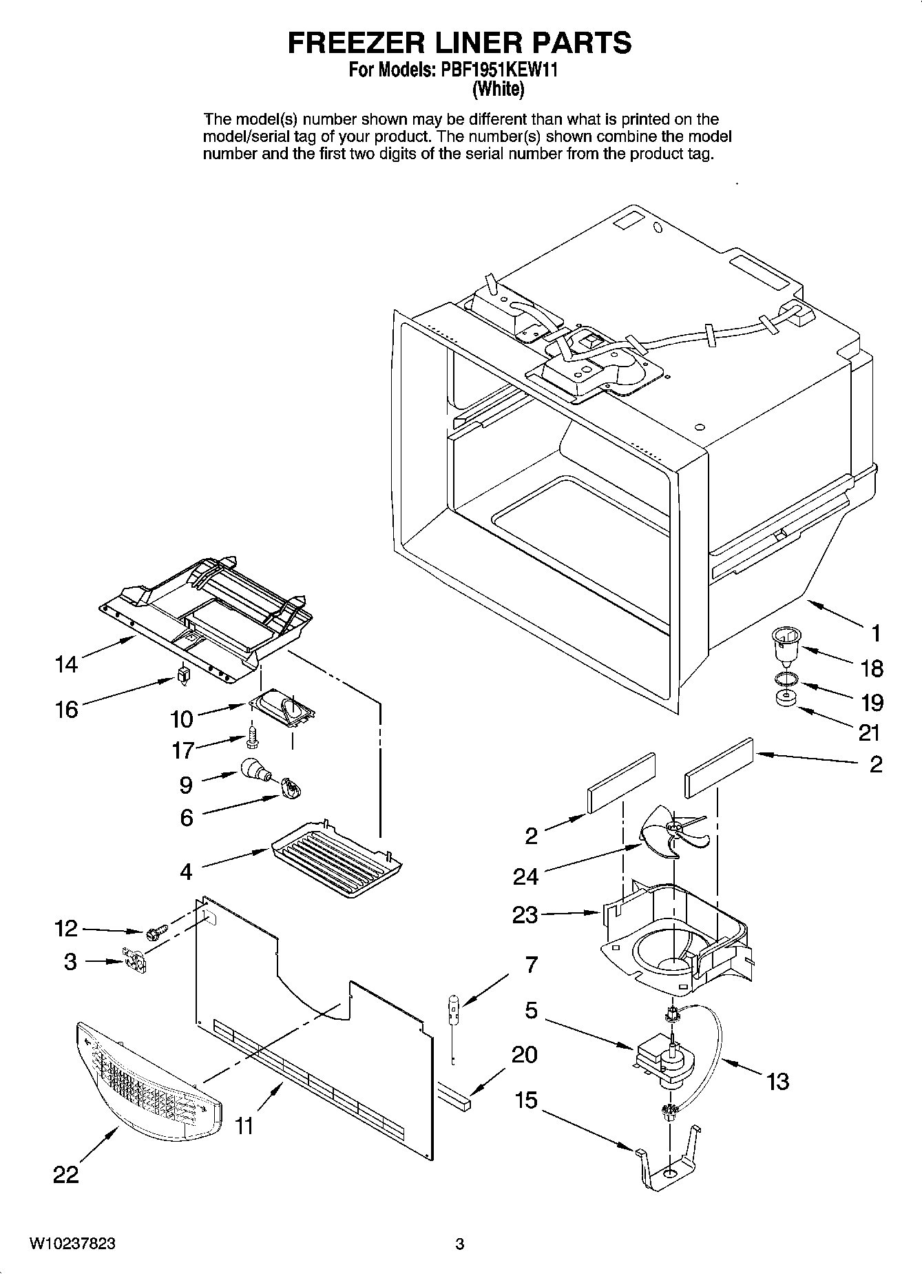 PBF1951KEW11 02 – FREEZER LINER PARTS