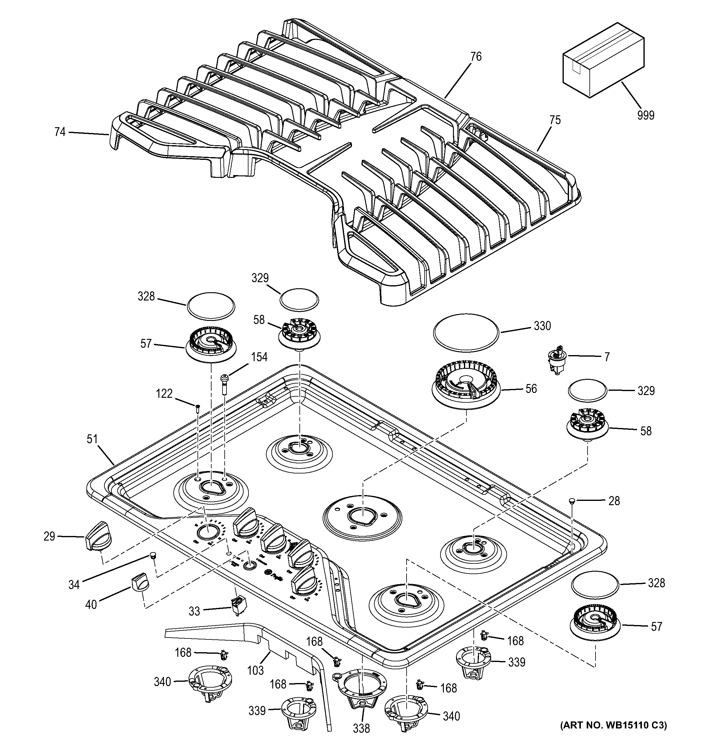 WB62T10818 GE Oven Gas Maintop Assembly