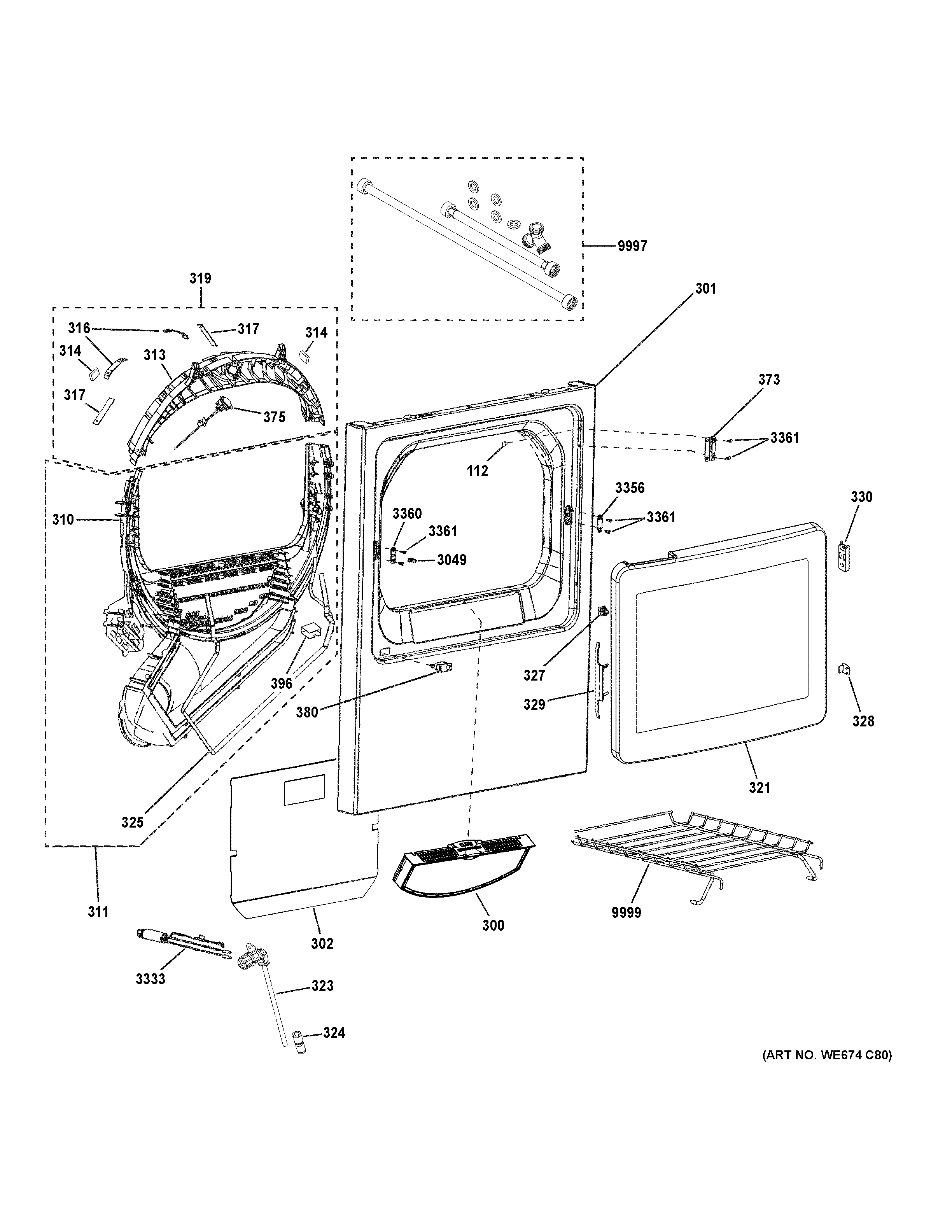 WE10X33654 GE Dryer Diamond Gray Glass Door