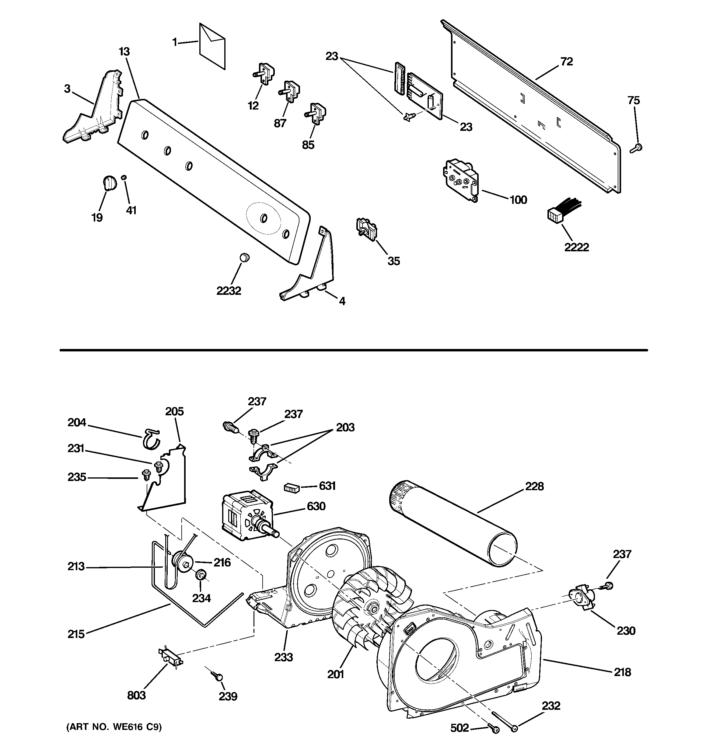 PTDN600EM1WT BACKSPLASH, BLOWER & MOTOR ASSEMBLY