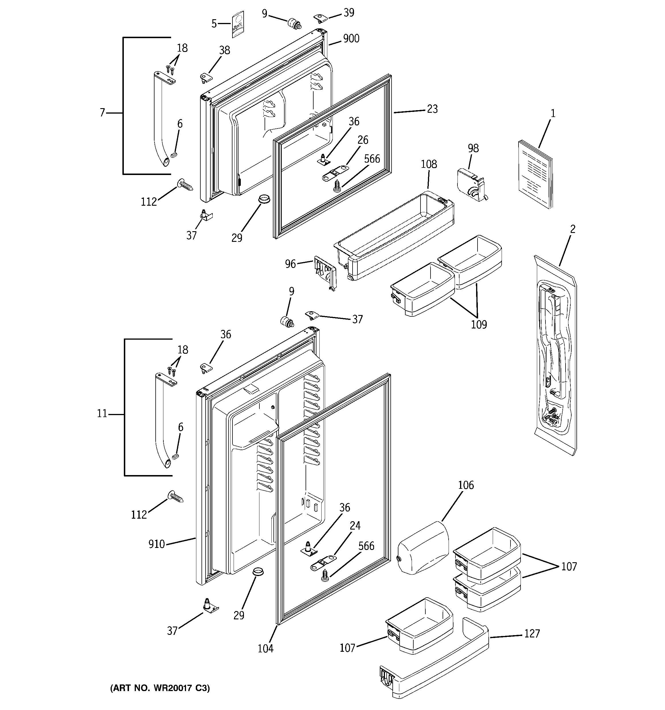 WR22X28065 GE Refrigerator Clear Dairy Door