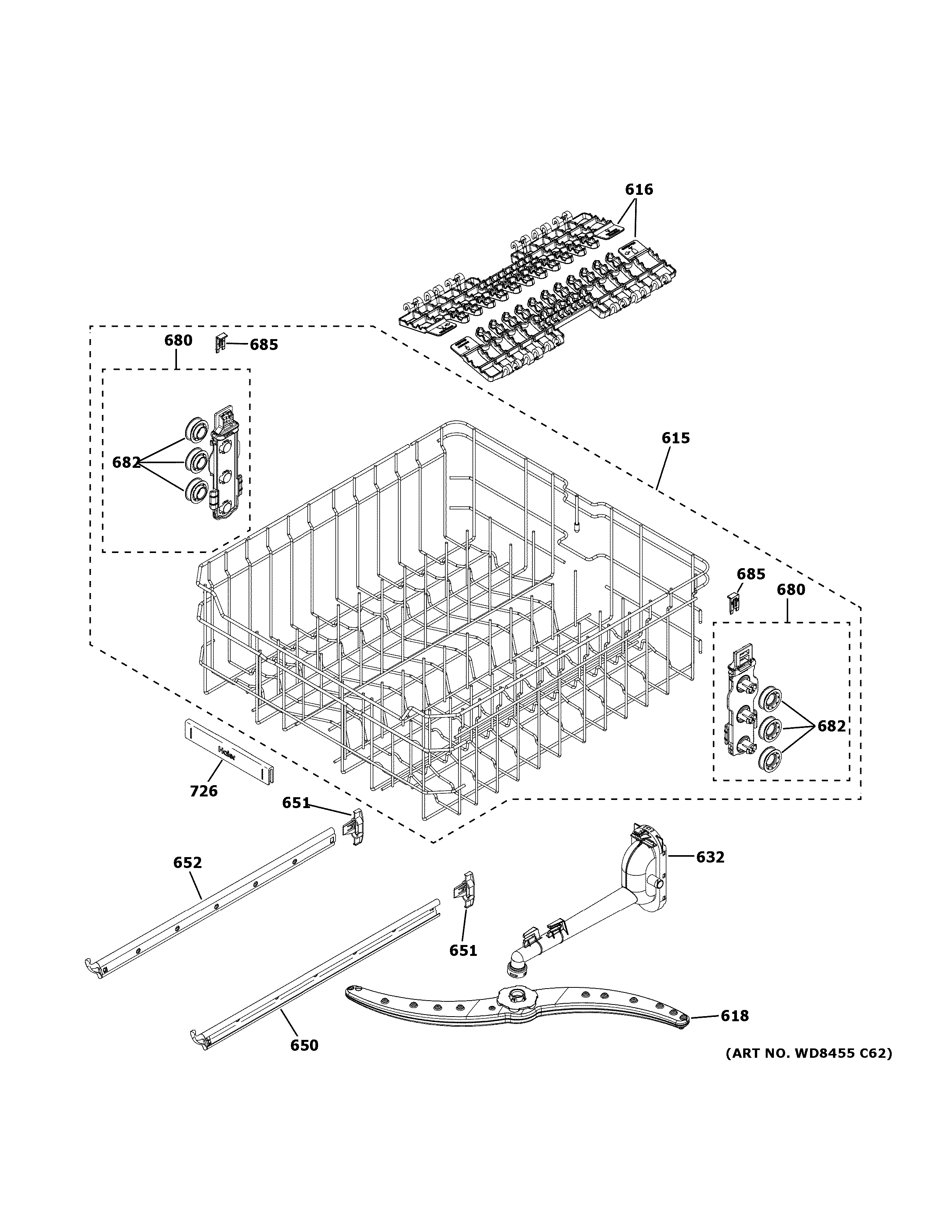 WD28X24827 GE Dishwasher Cup Shelf