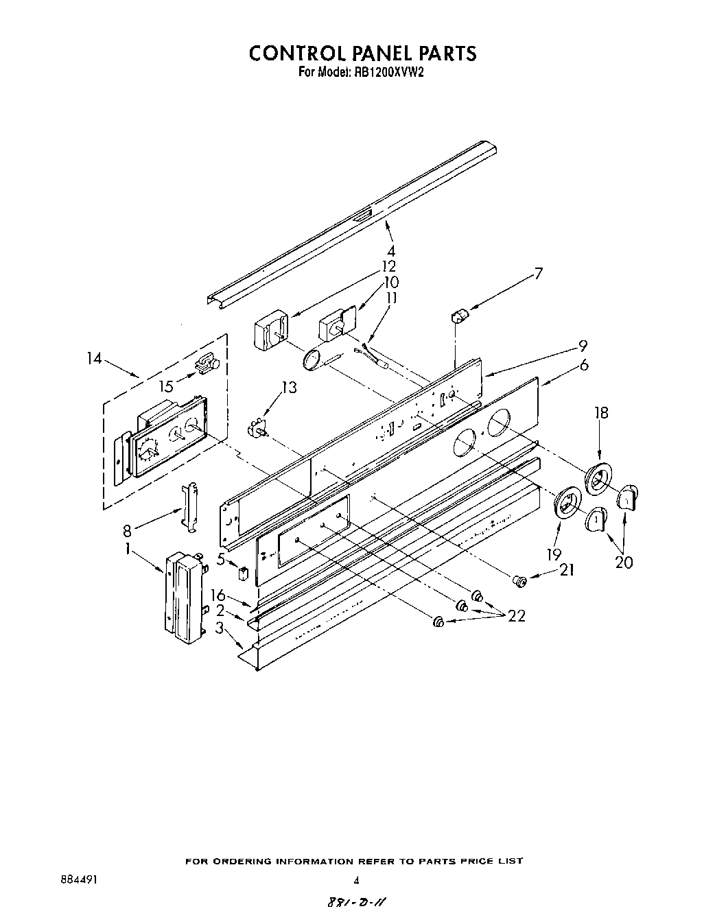 RB1200XVW2 03 – CONTROL PANEL , LIT/OPTIONAL