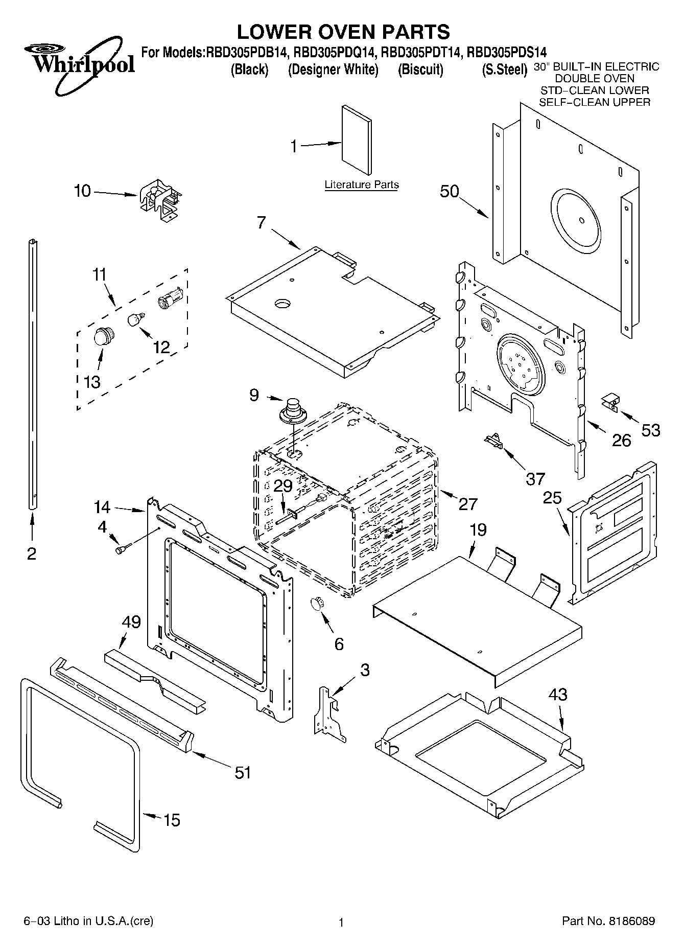 RBD305PDT14 01 – LOWER OVEN PARTS